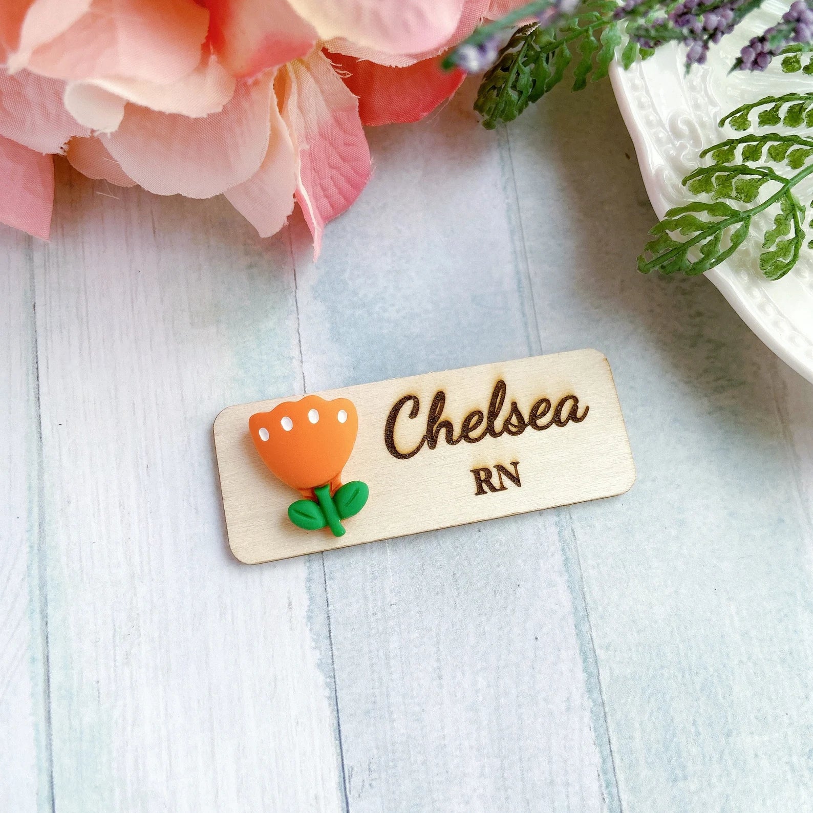 3D Green Flower Floral Personalized Name Tag