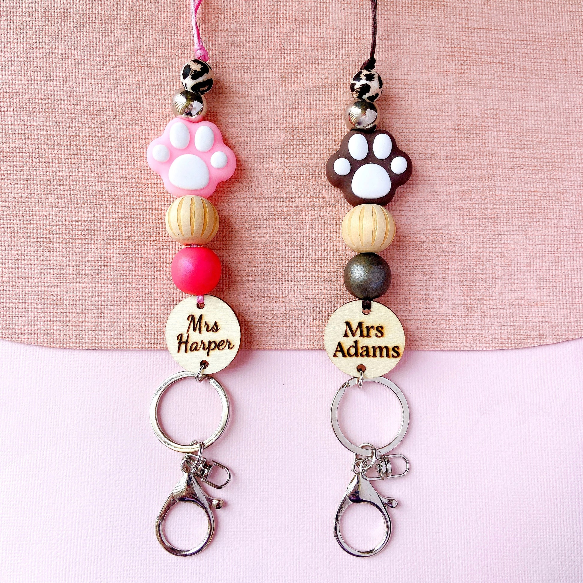 Animals Paw Print Personalized Name Teacher ID Key Lanyard
