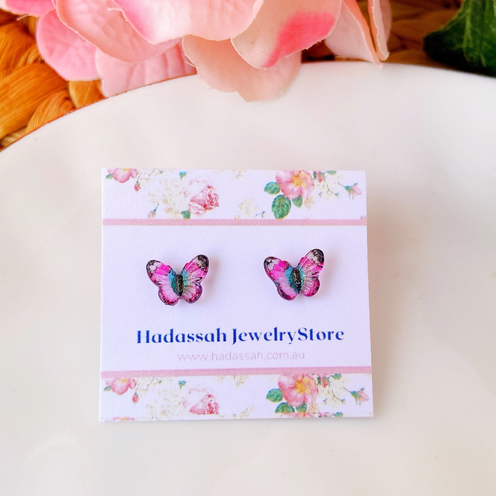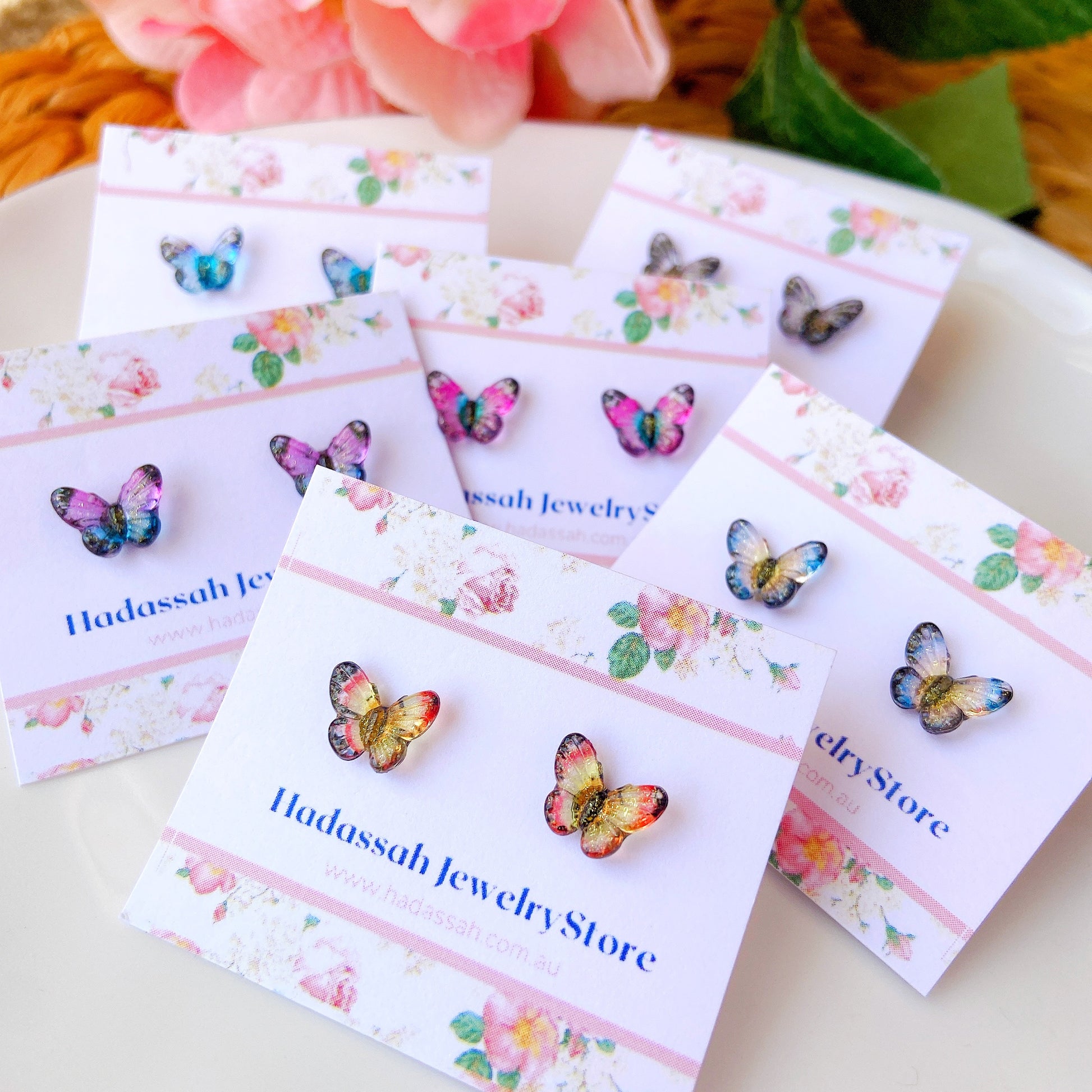 Black and Yellow Tiny Butterfly Hypoallergenic Stud Earrings
