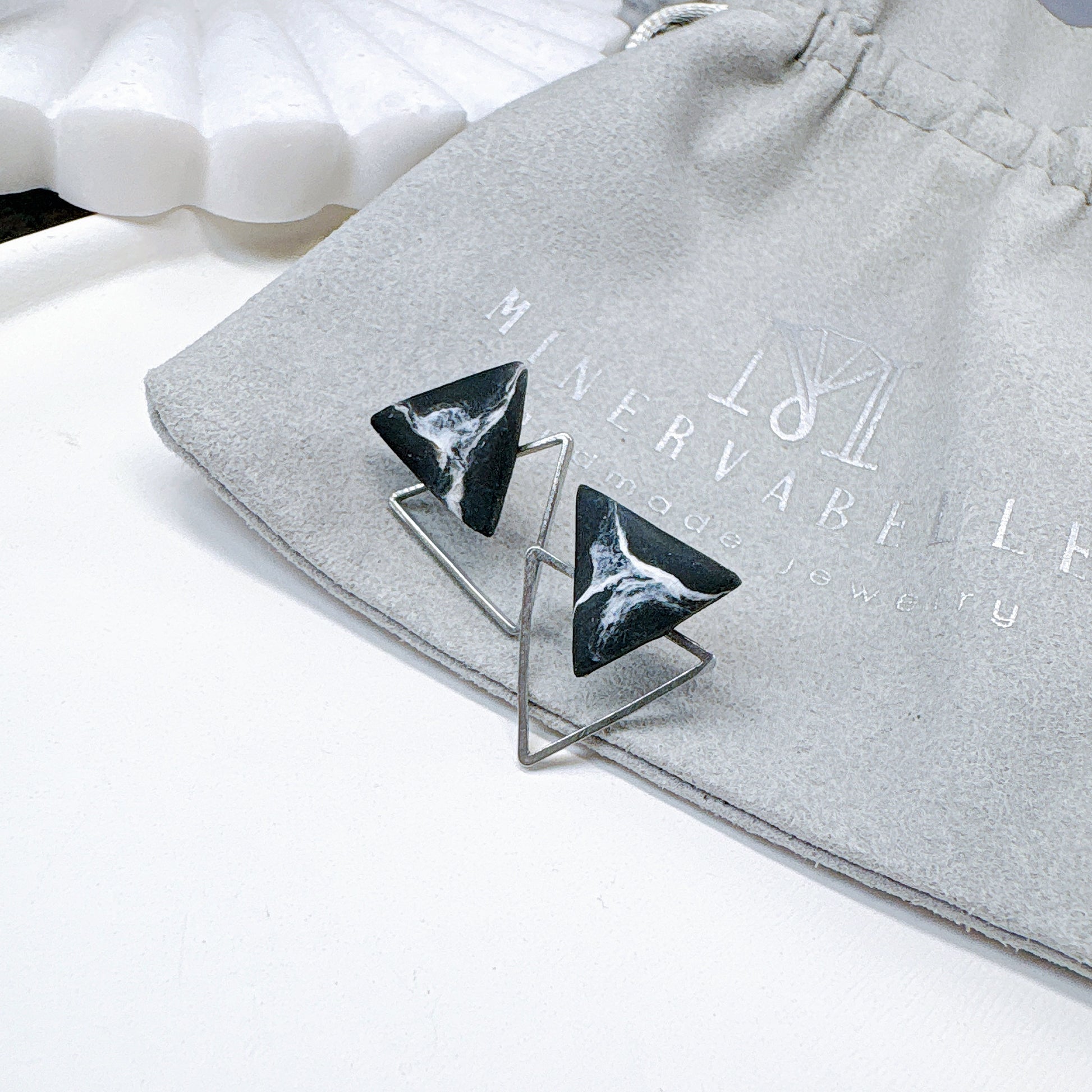 Black Marble & Gold Frame Triangle Minimalist Earrings