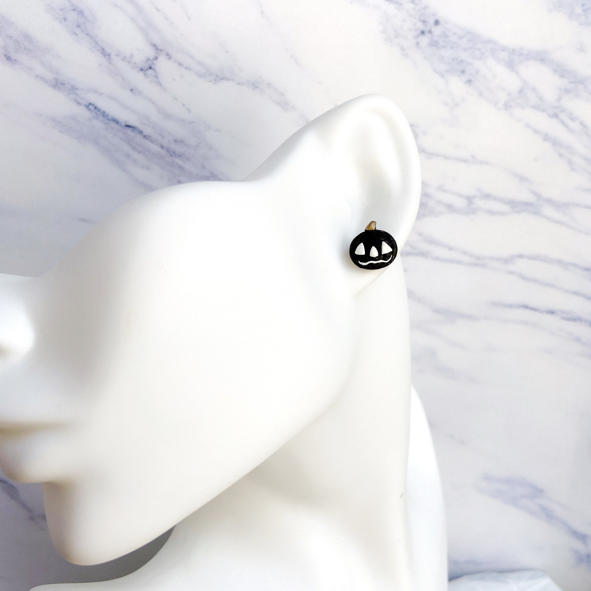 Black Pumpkin Polymer Clay Hypoallergenic Stud Earrings