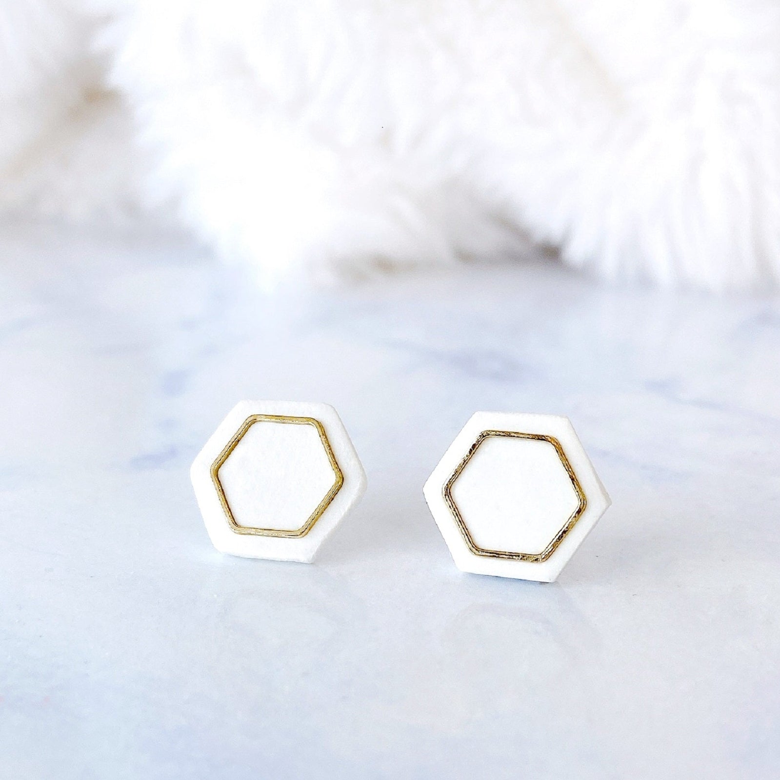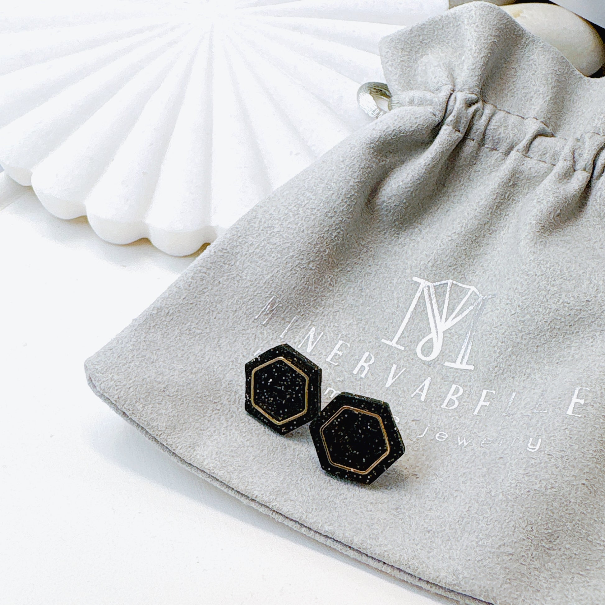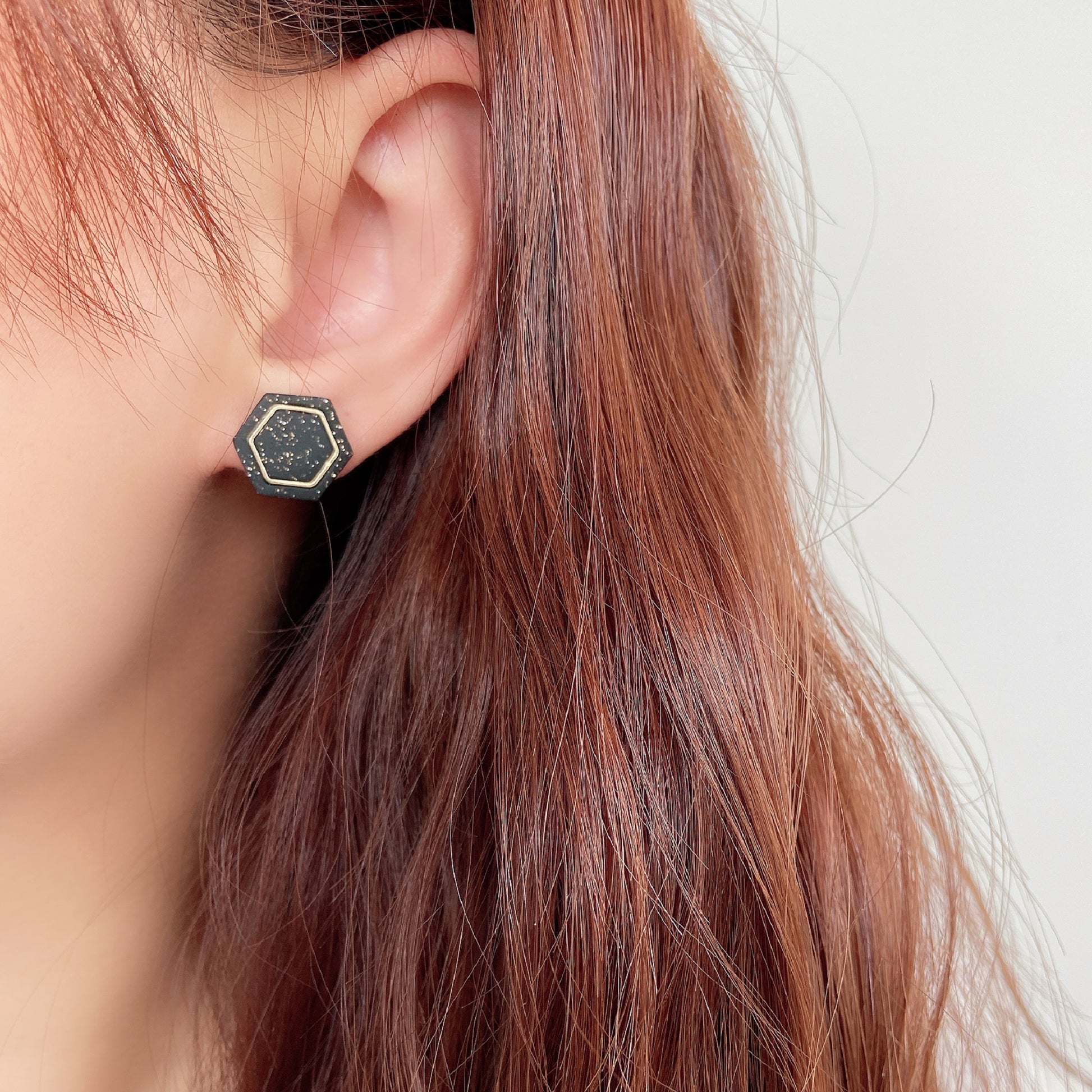 Black With Gold Specks Hexagon Stud Earrings – Metallic Accent Collection