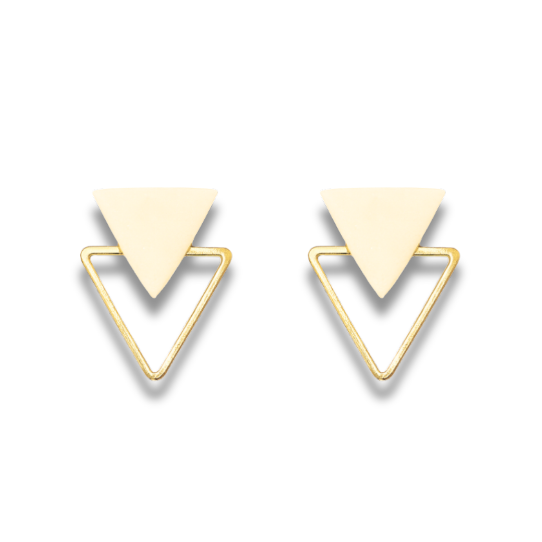 Cream Yellow & Gold Triangle Dual-Layer Stud Earrings – Geometric Minimalist Collection