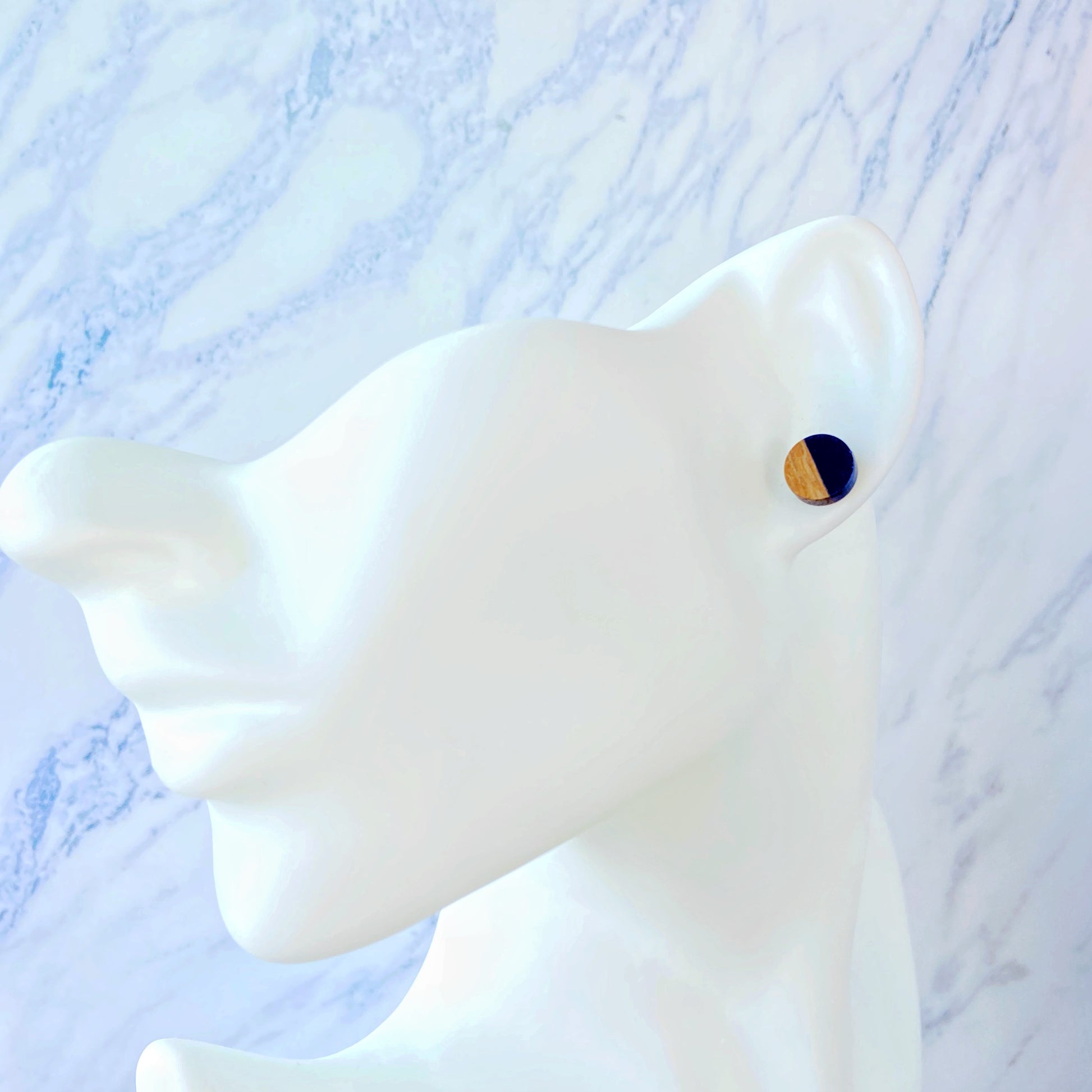 Deep Blue Hypoallergenic Wood and Acrylic 2-Tones Earring Studs