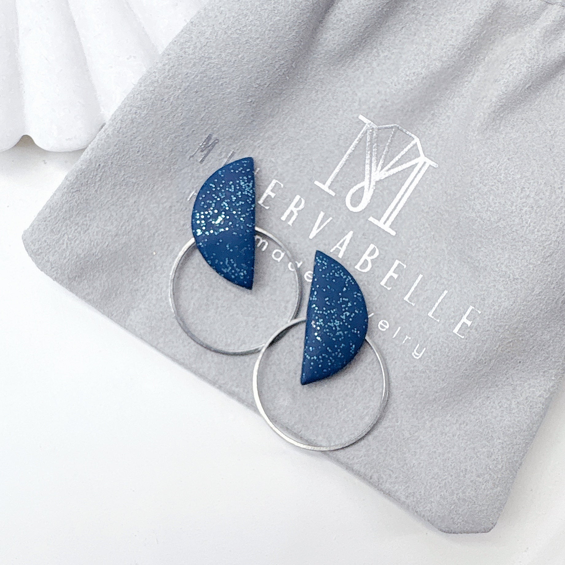 Glitter Blue Half-Moon Polymer Clay With Silver Hoop Earrings
