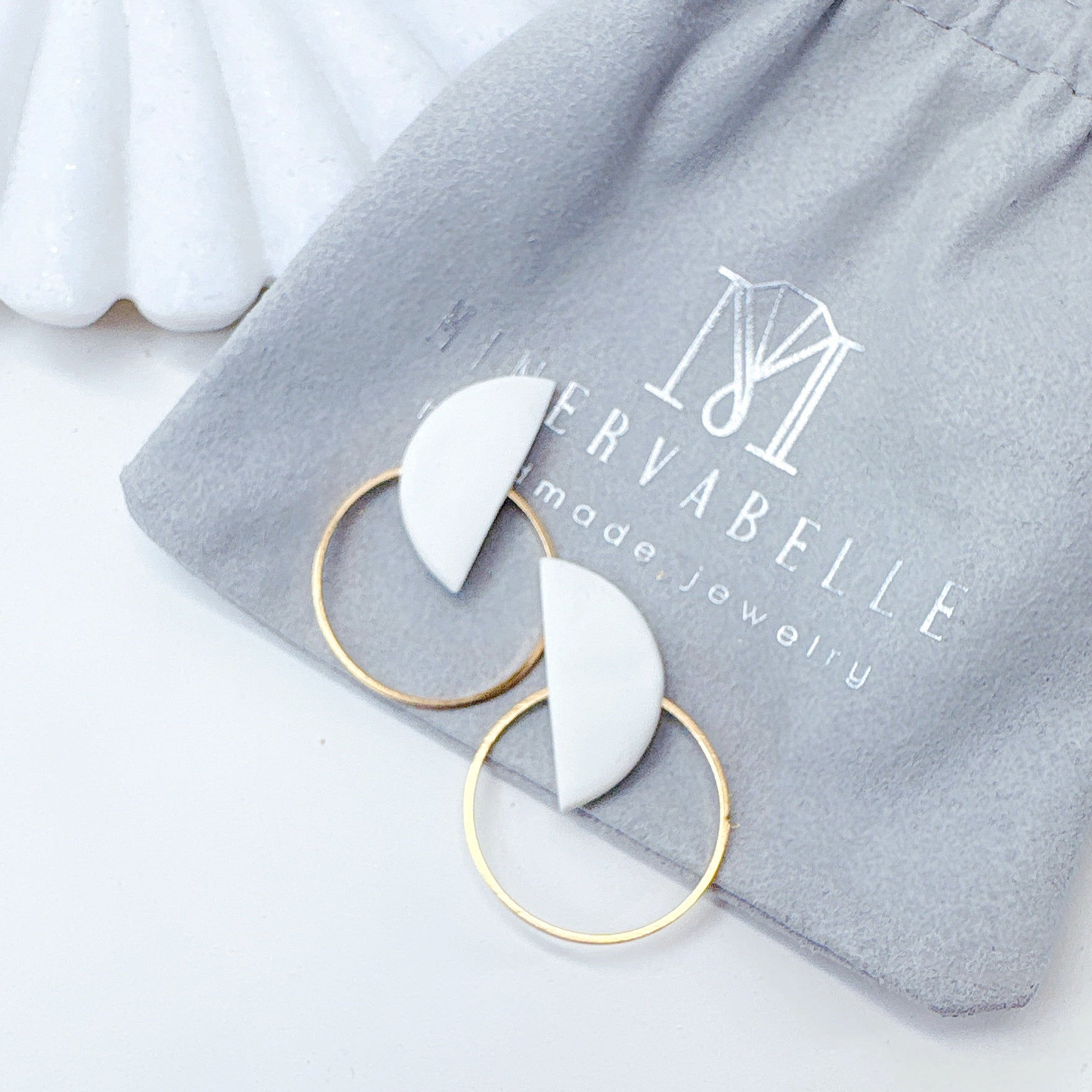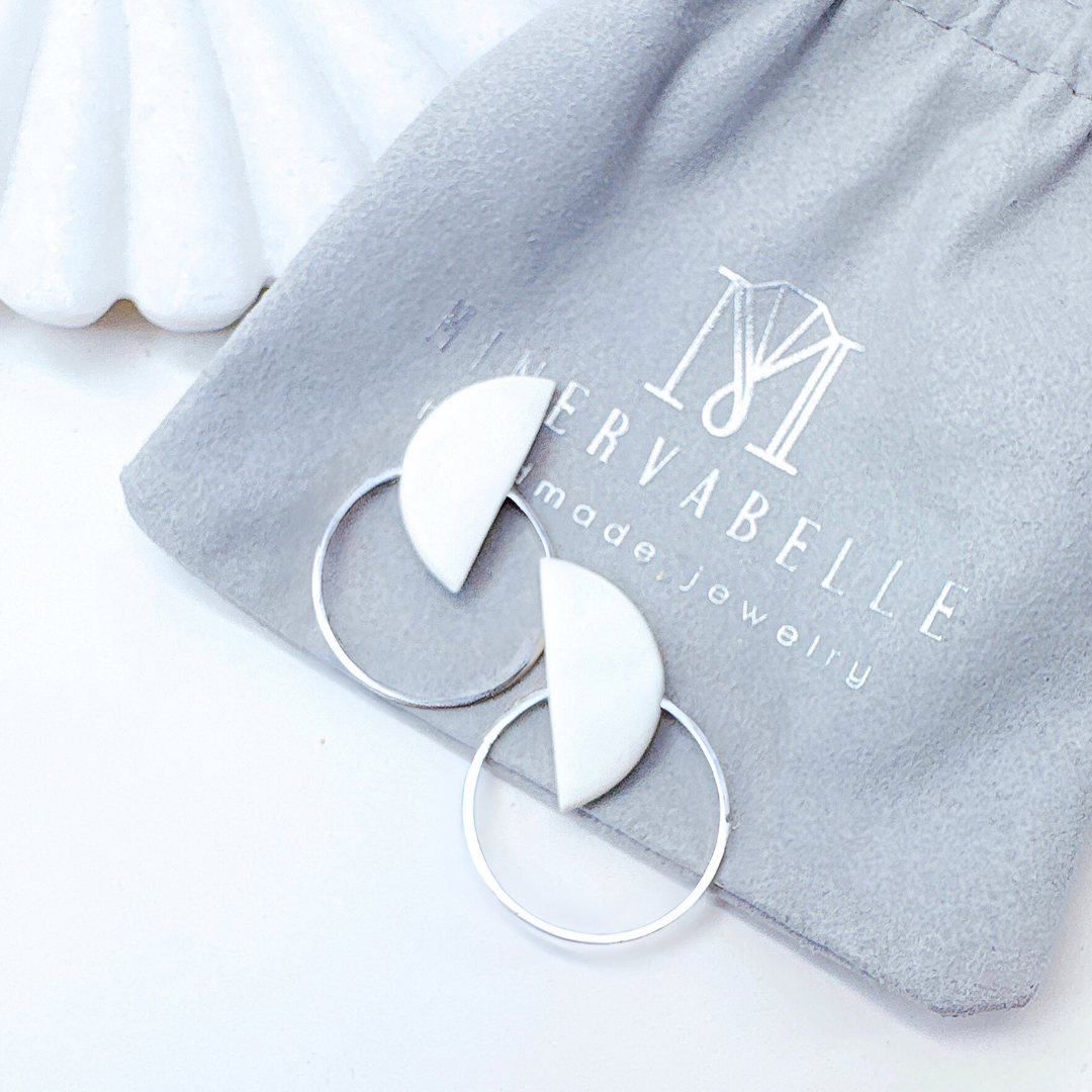 These modern half-moon earrings combine simplicity and style with a unique geometric touch. Each pair features a handcrafted polymer clay semicircle attached to a smooth metal hoop, creating a perfect balance of texture and elegance.