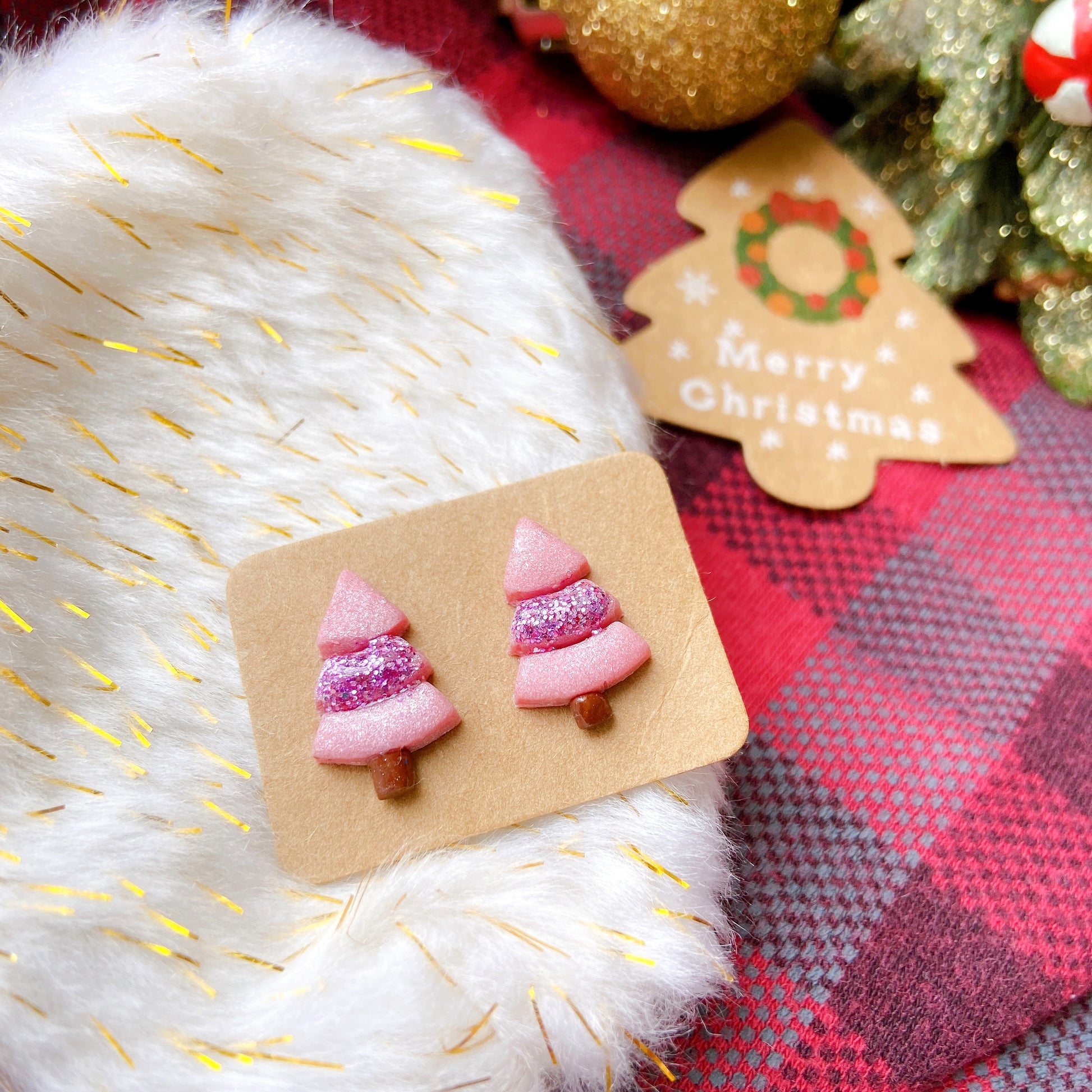 Glitter Christmas Tree Polymer Clay Hypoallergenic Stud Earrings