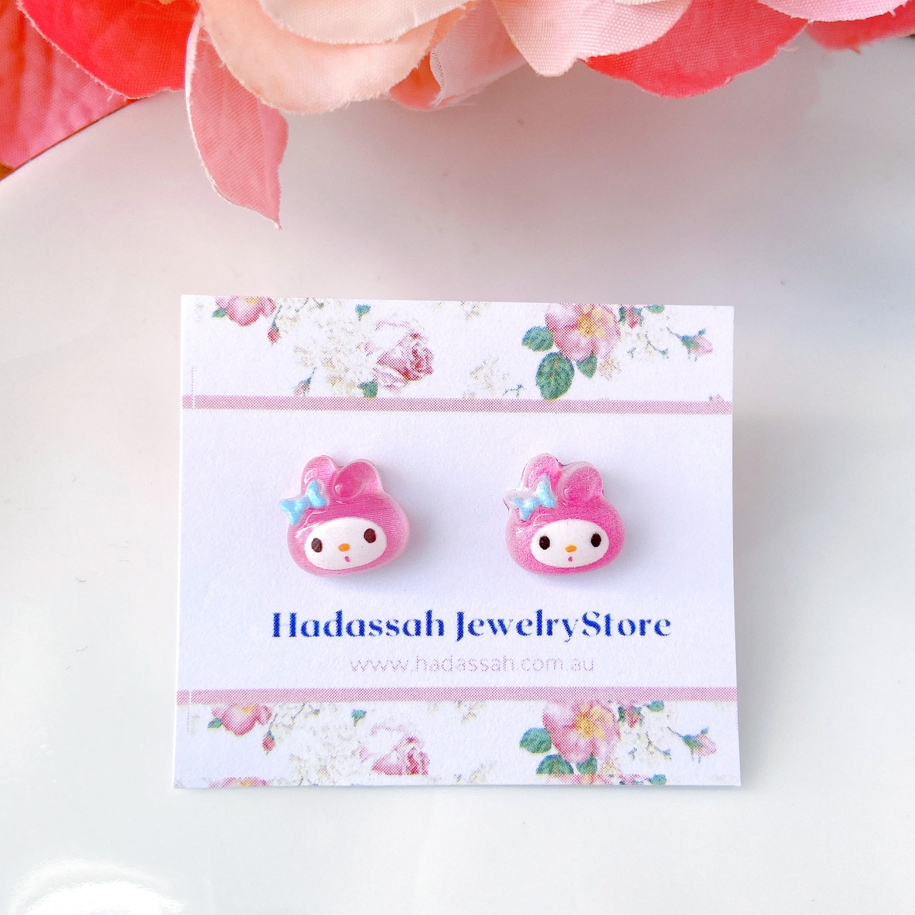 Deep Pink Glitter Crystal Jelly My Melody Inspired Hypoallergenic Stud Earrings