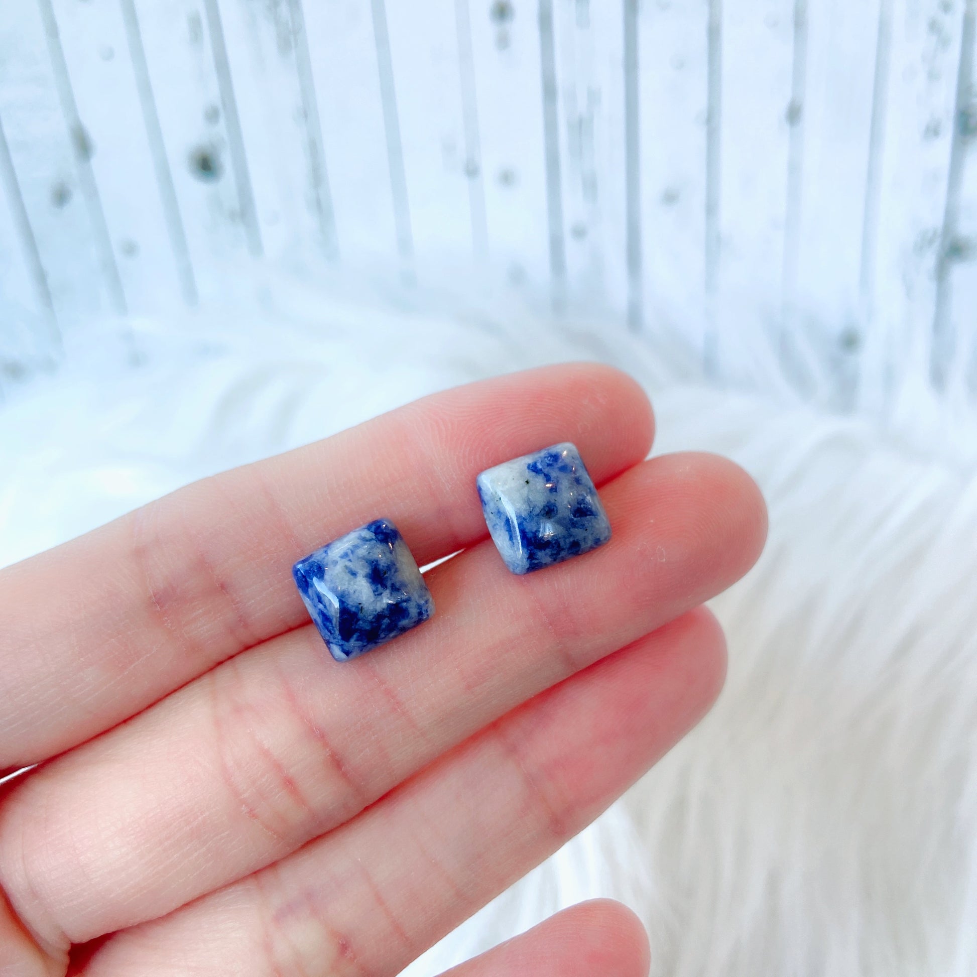 Lapis Lazuli 10mm Square Natural Stone Earrings