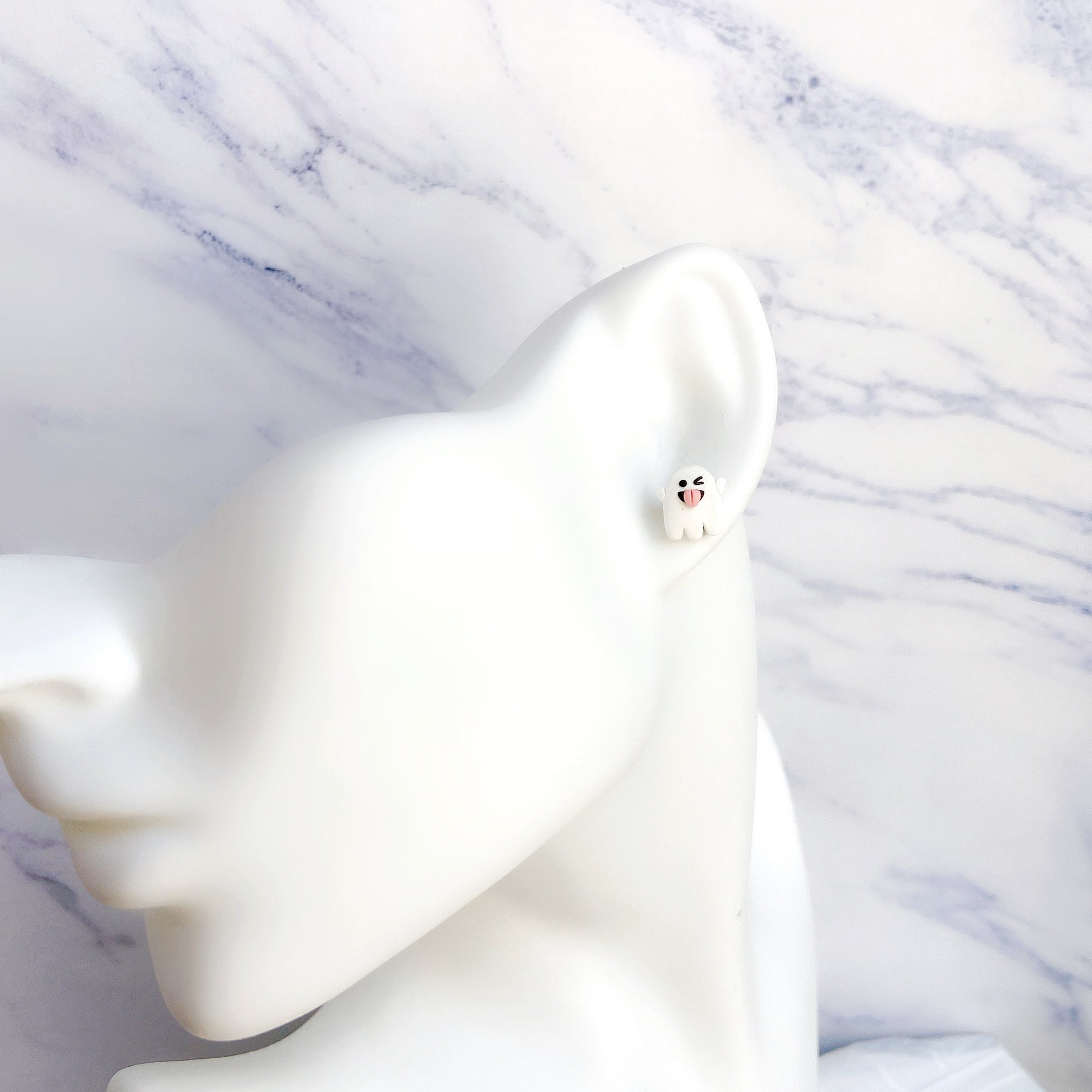 Halloween Funny Face Ghost Polymer Clay Hypoallergenic Stud Earrings