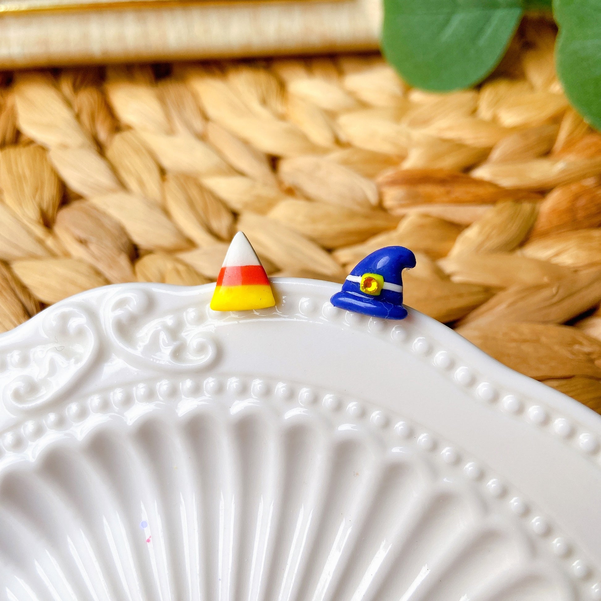 Halloween Witch Hat & Candy Polymer Clay Hypoallergenic Stud Earrings