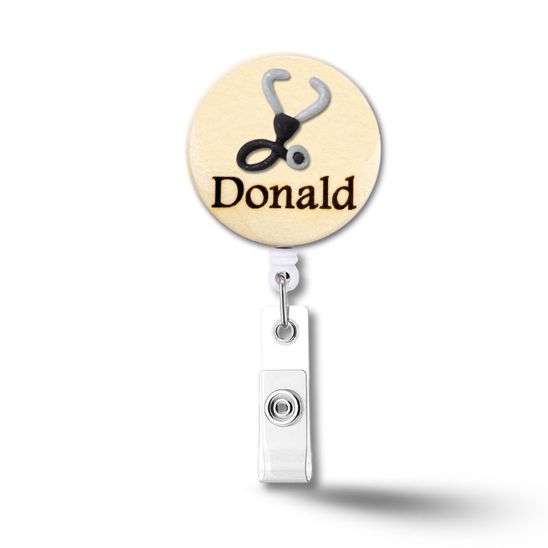 Handmade 3D Black Stethoscope Medical Doctor Personalized Name Badge Reel