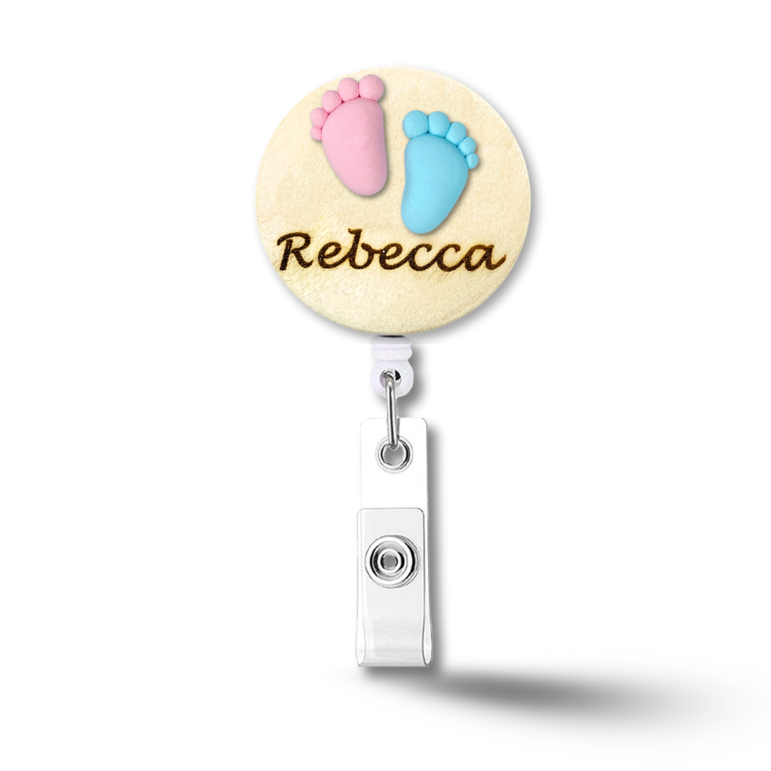 Add a touch of fun and personality to your workday with this handcrafted wooden badge reel! Featuring a round wood base and a 3D handmade clay charm on top, this ID holder is custom engraved with your name – making it both practical and uniquely yours.
