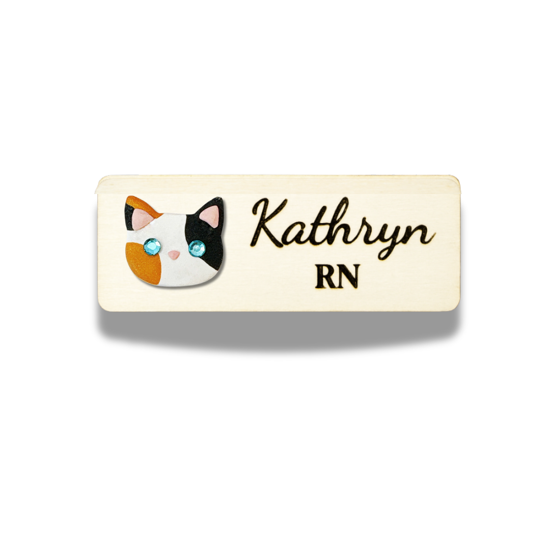 Handmade 3D Rhinestone Black and Brown Cat Head Personalised Name Tag