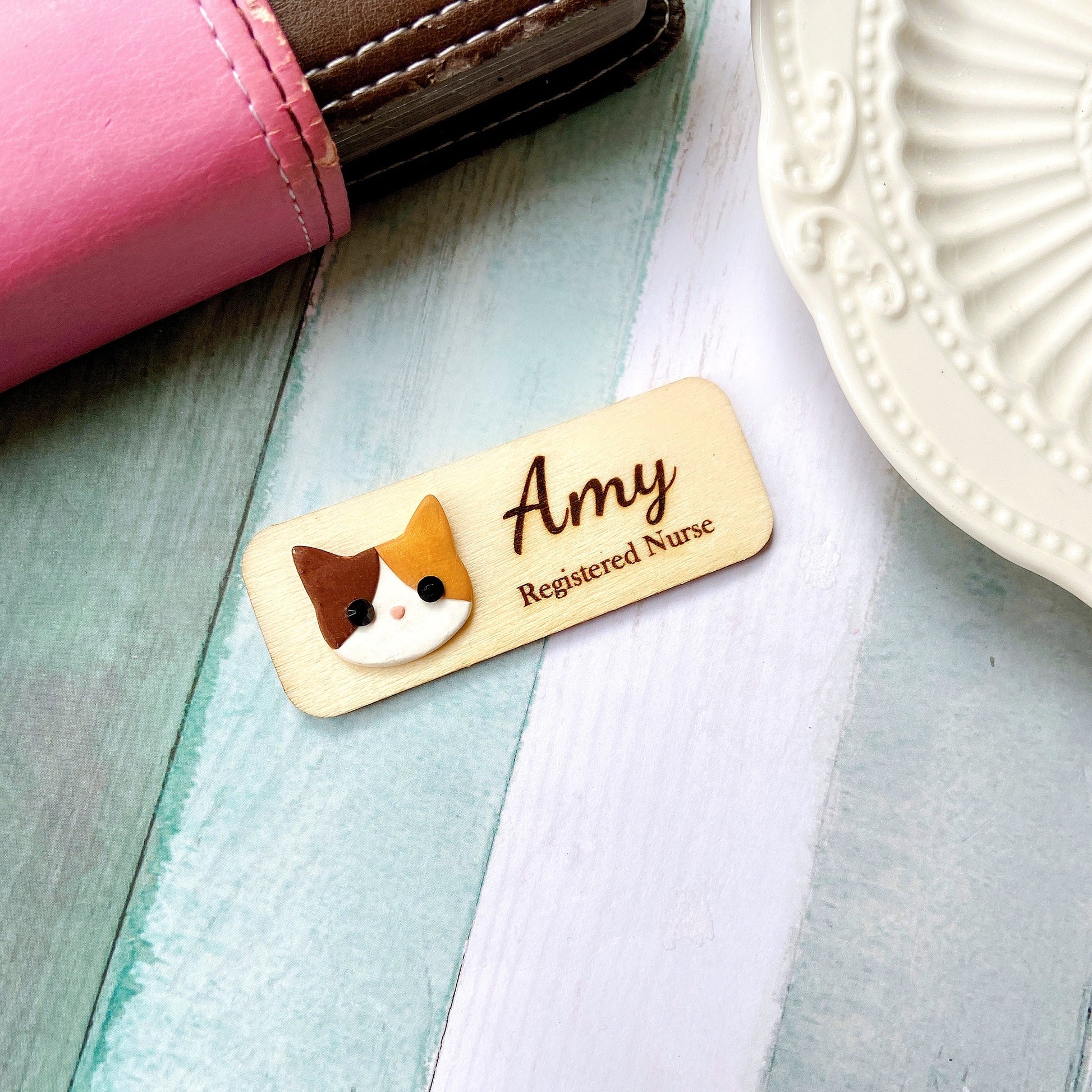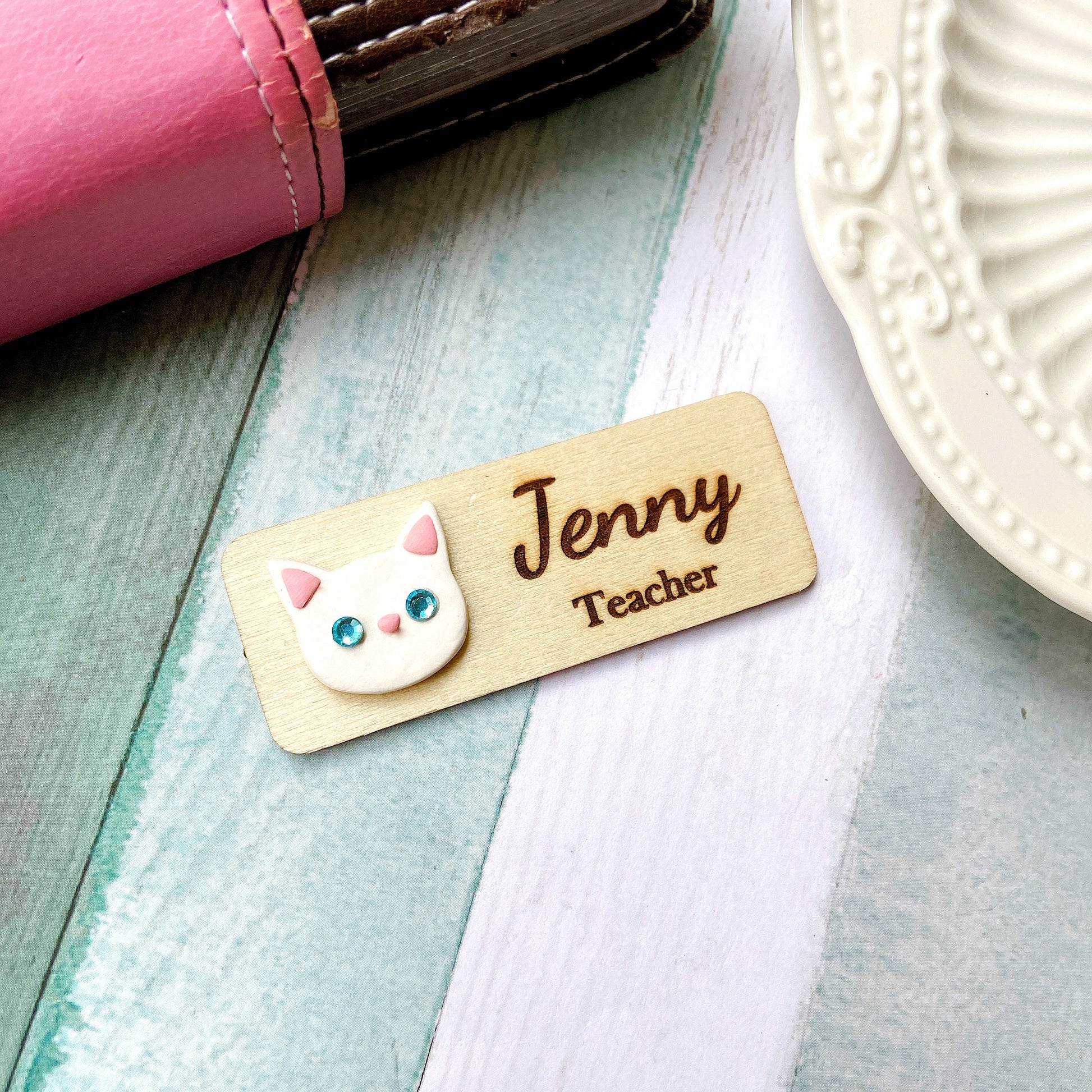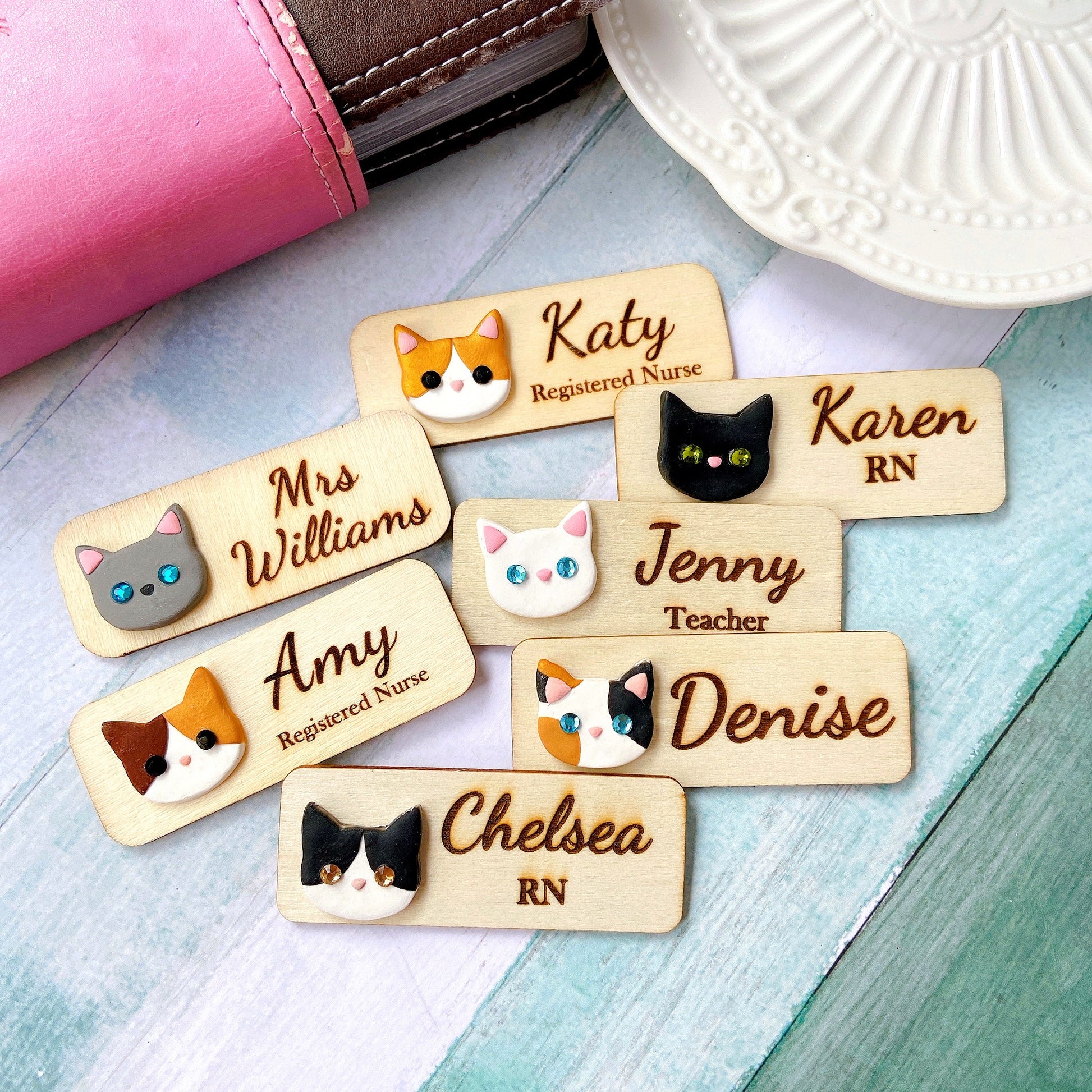Handmade 3D Rhinestone Golden Cat Head Personalised Name Tag