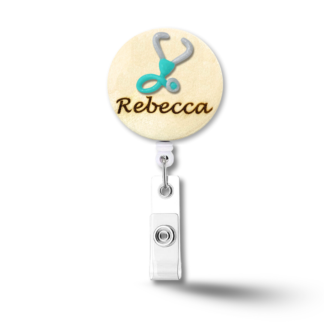 Handmade 3D Teal Stethoscope Medical Doctor Personalized Name Badge Reel