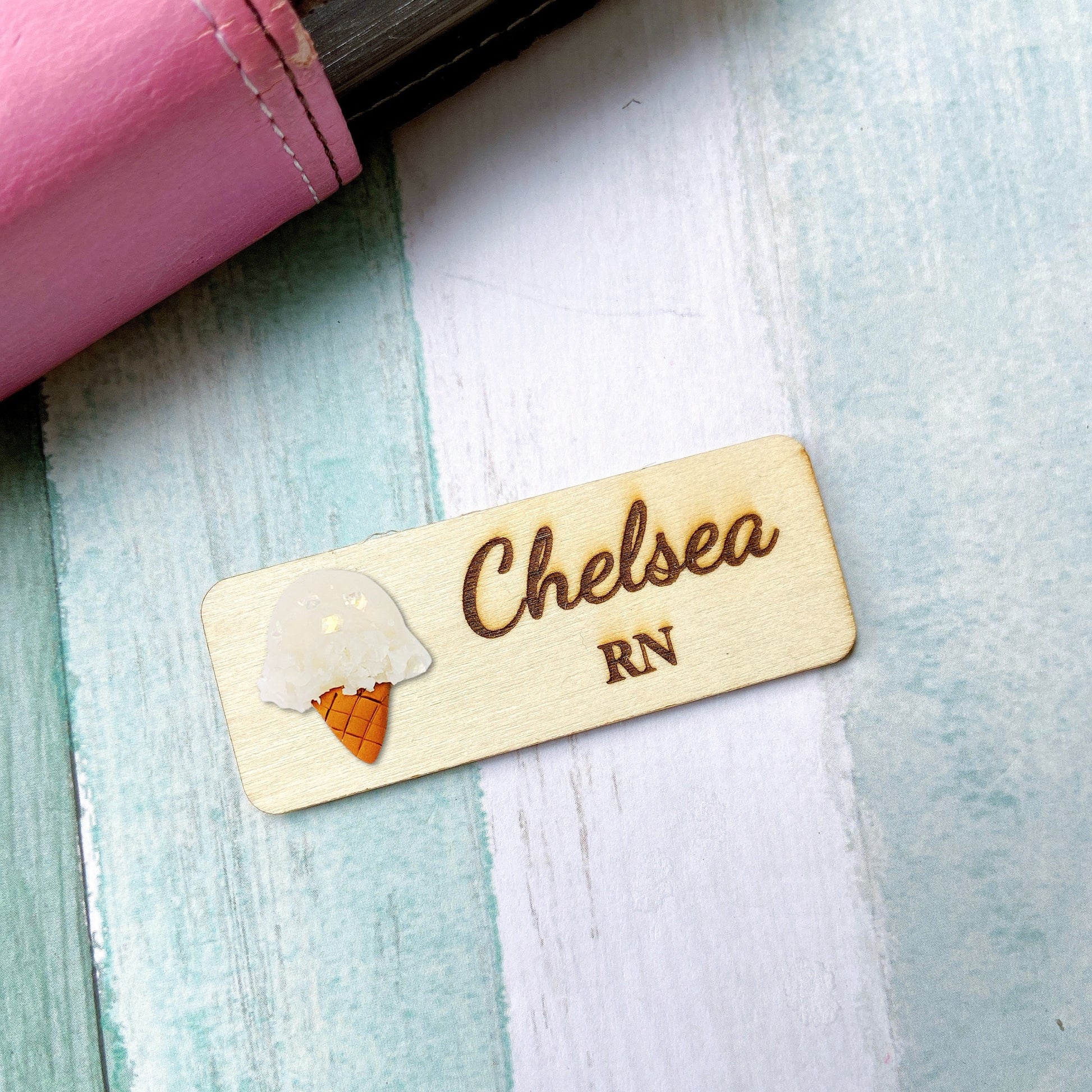 Handmade 3D Vanilla Ice Cream Personalised Name Tag