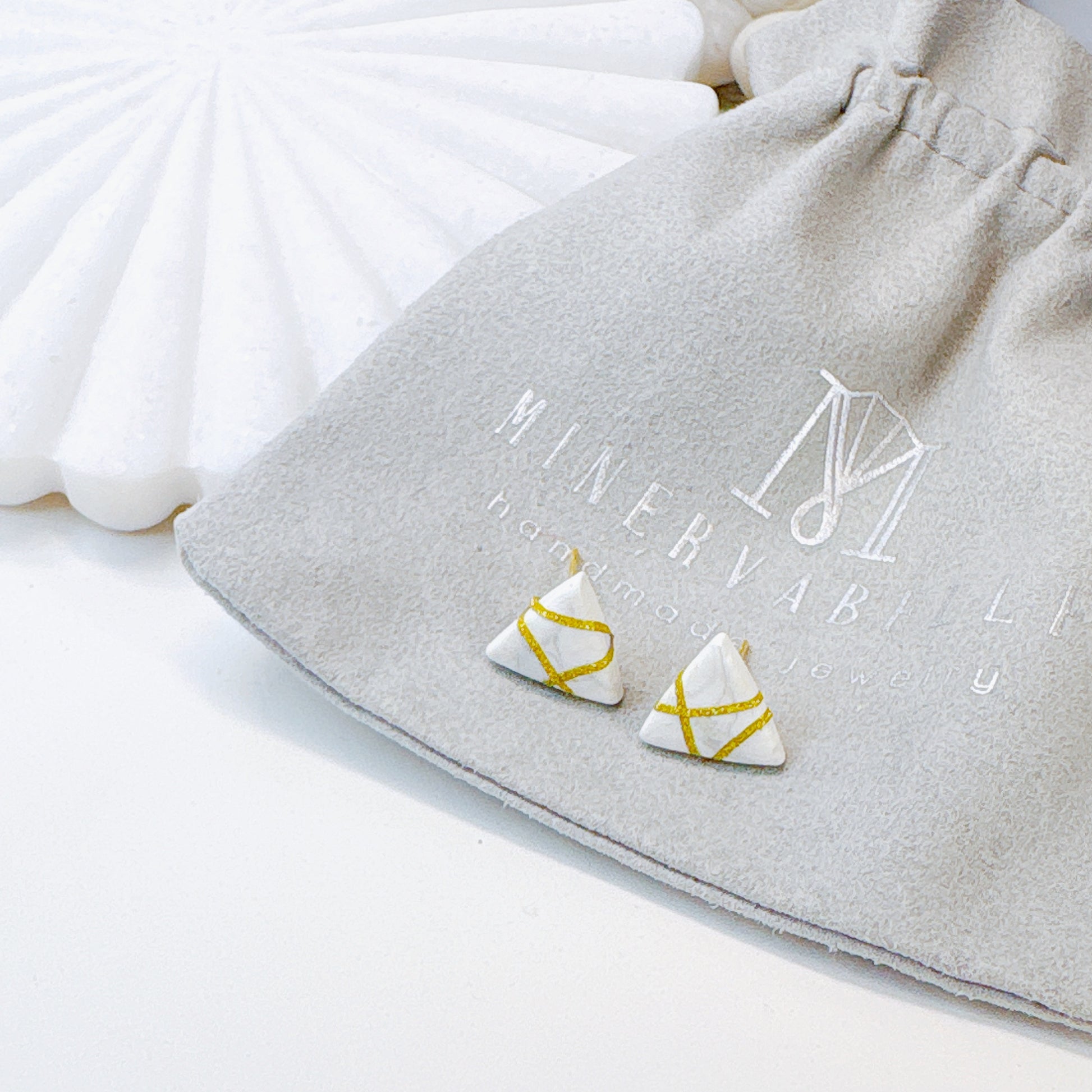 Each pair is handcrafted from polymer clay, giving it a smooth matte finish and lightweight comfort.