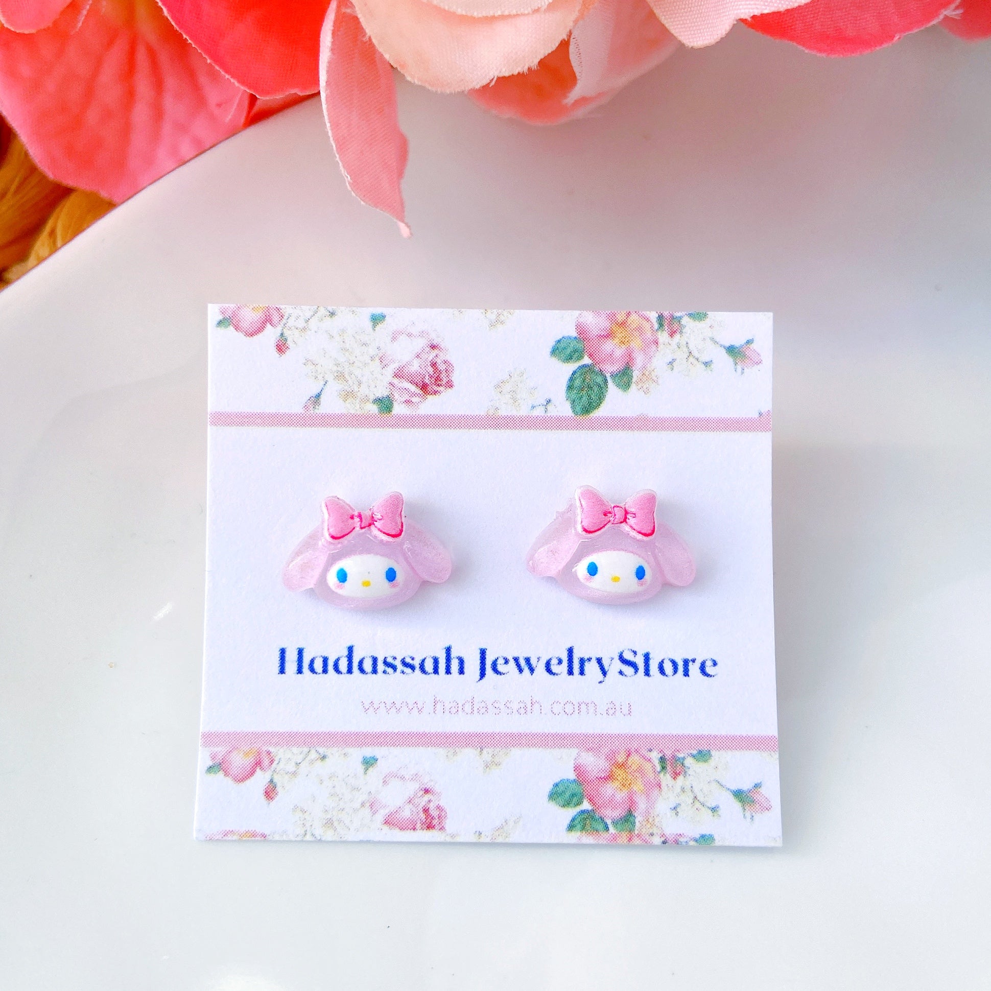 Light Pink Glitter Crystal Jelly My Melody Inspired Hypoallergenic Stud Earrings