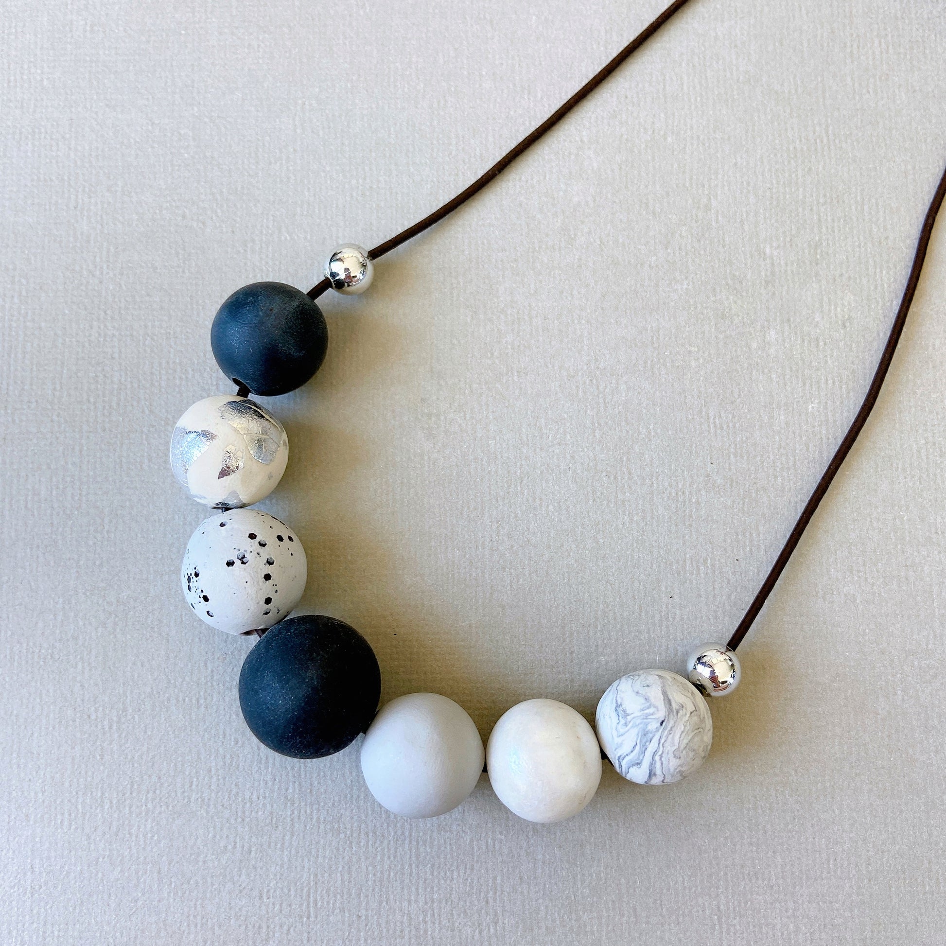 Monochrome Polymer Clay Bead Necklace – Minimalist Statement Jewelry