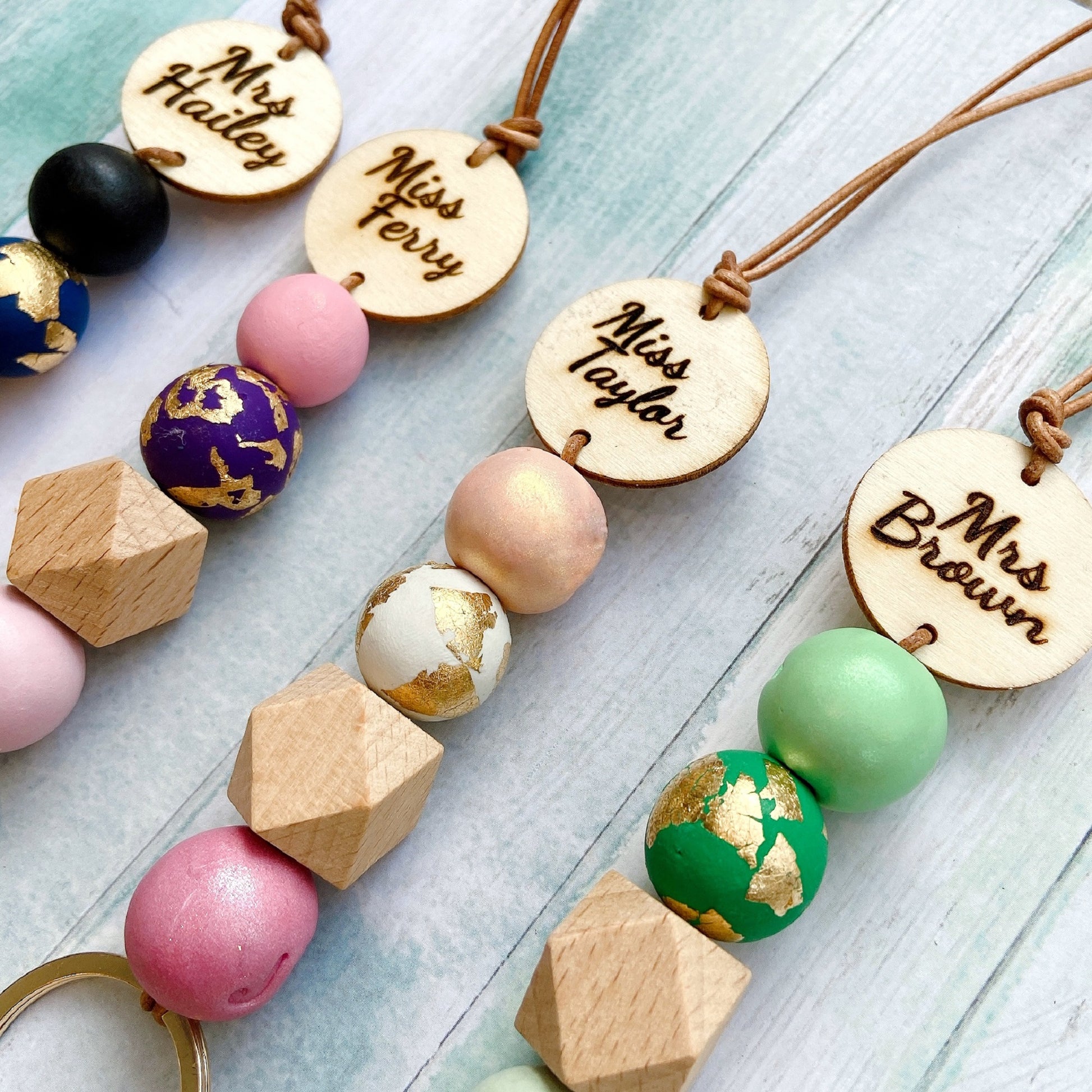 Perfect as a thoughtful teacher appreciation gift, or as a unique accessory for work, keys, or ID badges. Each piece can be customised with a personal name tag to make it truly one of a kind.