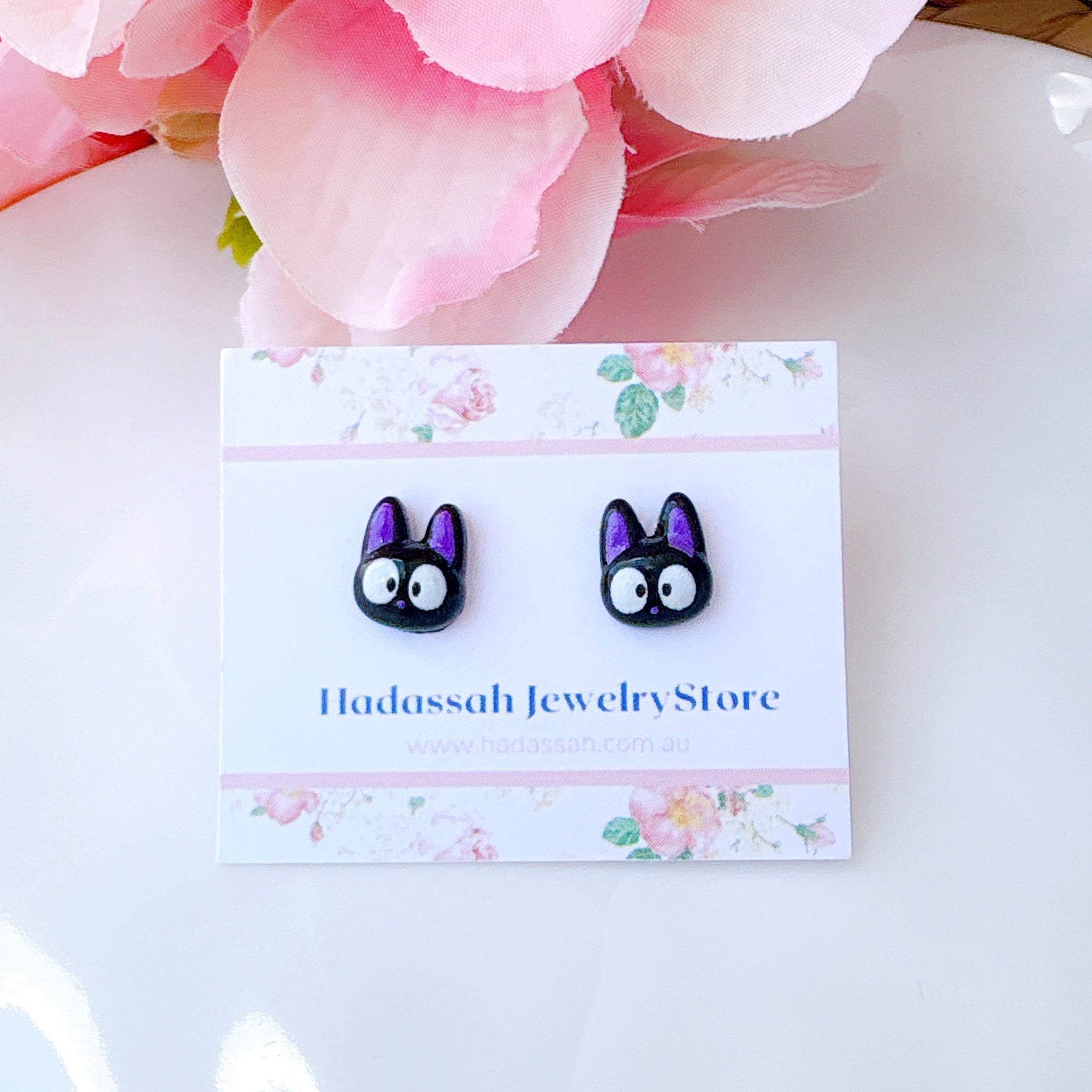Purple Ear Black Cat Inspired Hypoallergenic Stud Earrings