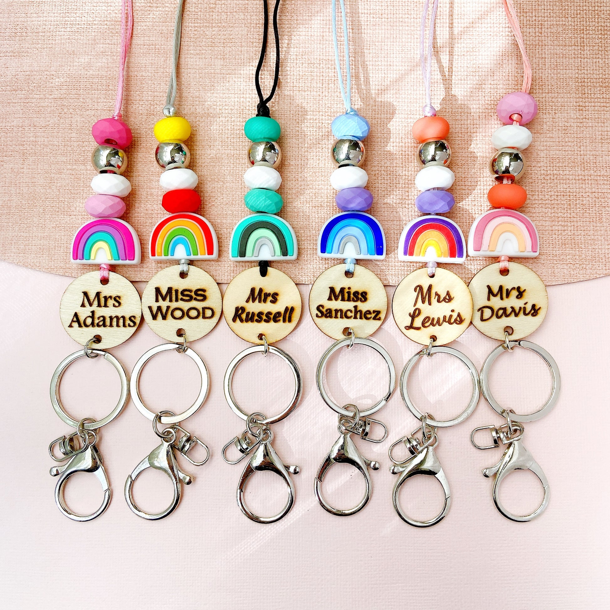 Rainbow Personalized Name Teacher ID Key Lanyard with Tassels