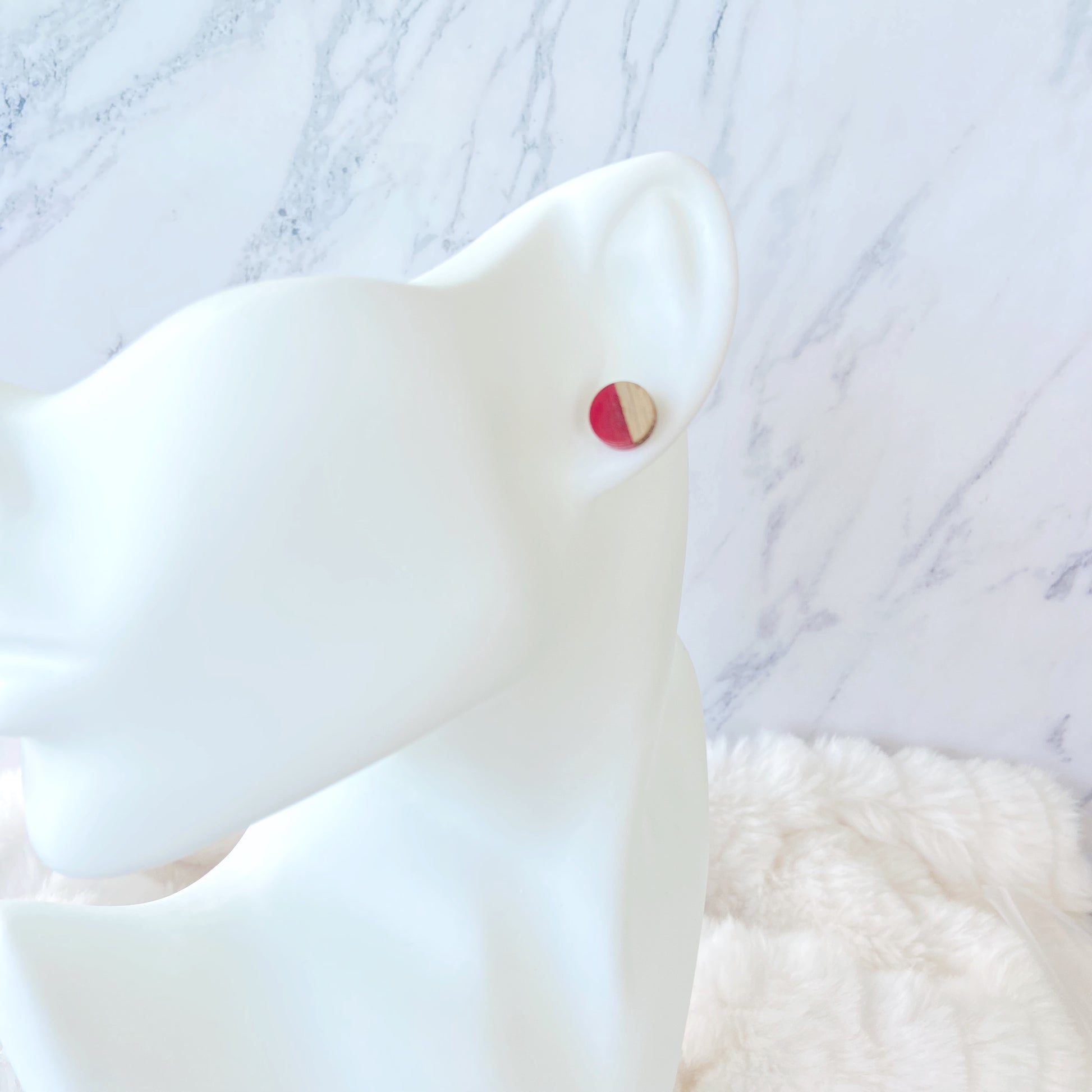 Red Hypoallergenic Wood and Acrylic 2-Tones Earring Studs