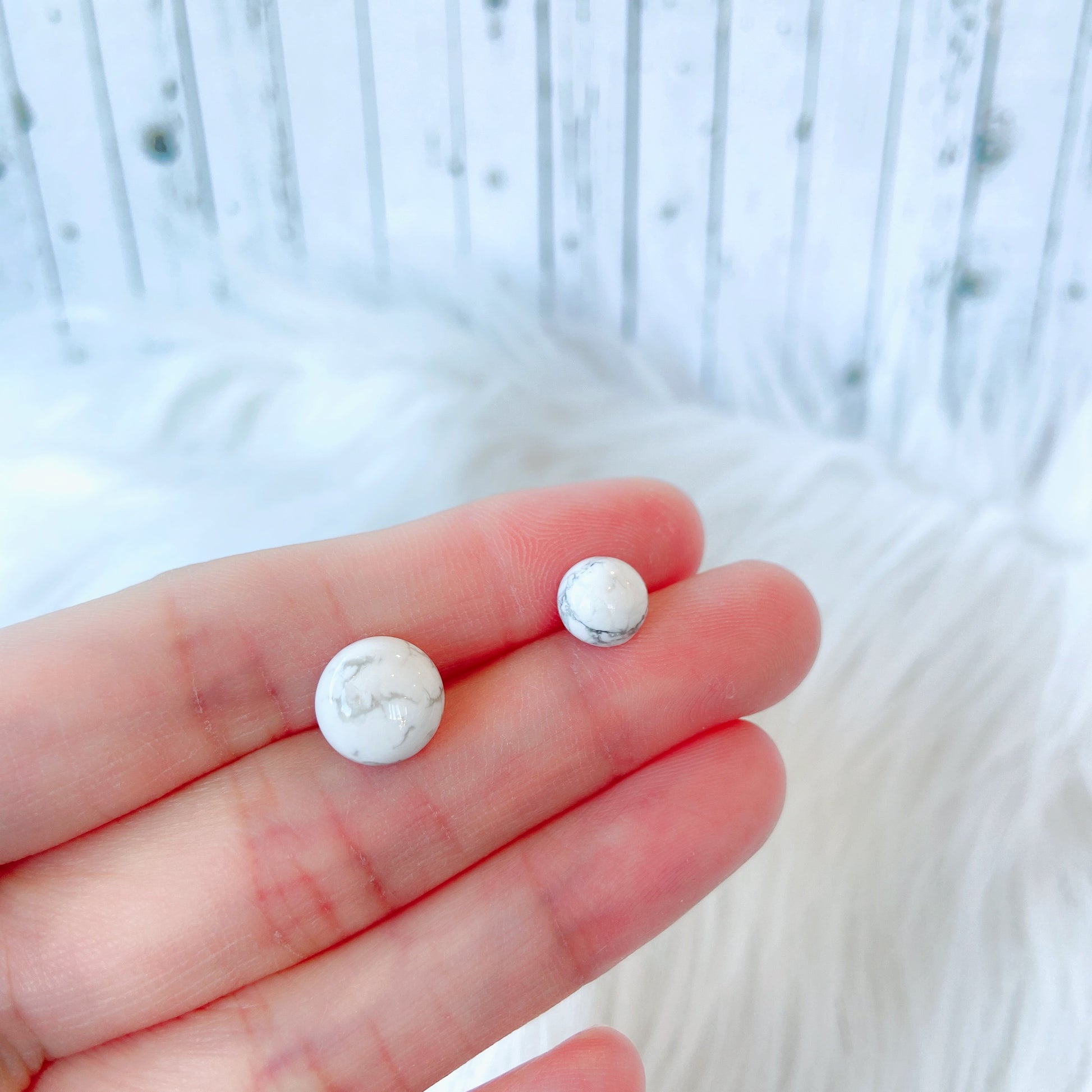 White Turquoise 8mm/10mm Round Natural Stone Earrings