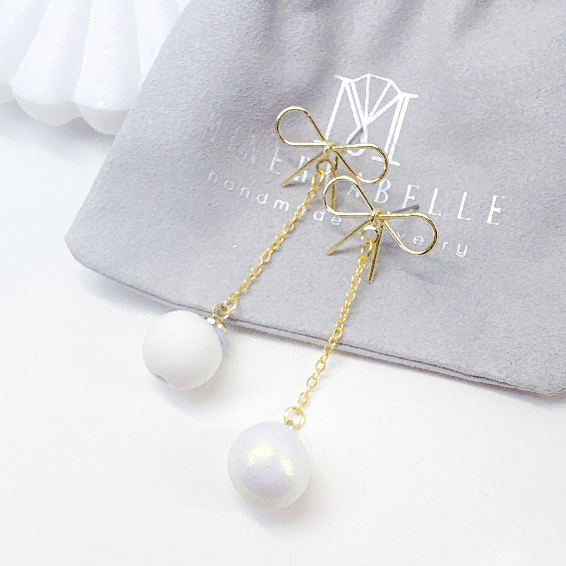 Graceful and feminine, these Bow & Pearl Earrings capture timeless elegance with a modern twist. Featuring a delicate gold bow paired with a lustrous pearl drop, this design comes in two versatile styles – a short drop for everyday sophistication and a long chain dangle for added glamour.
