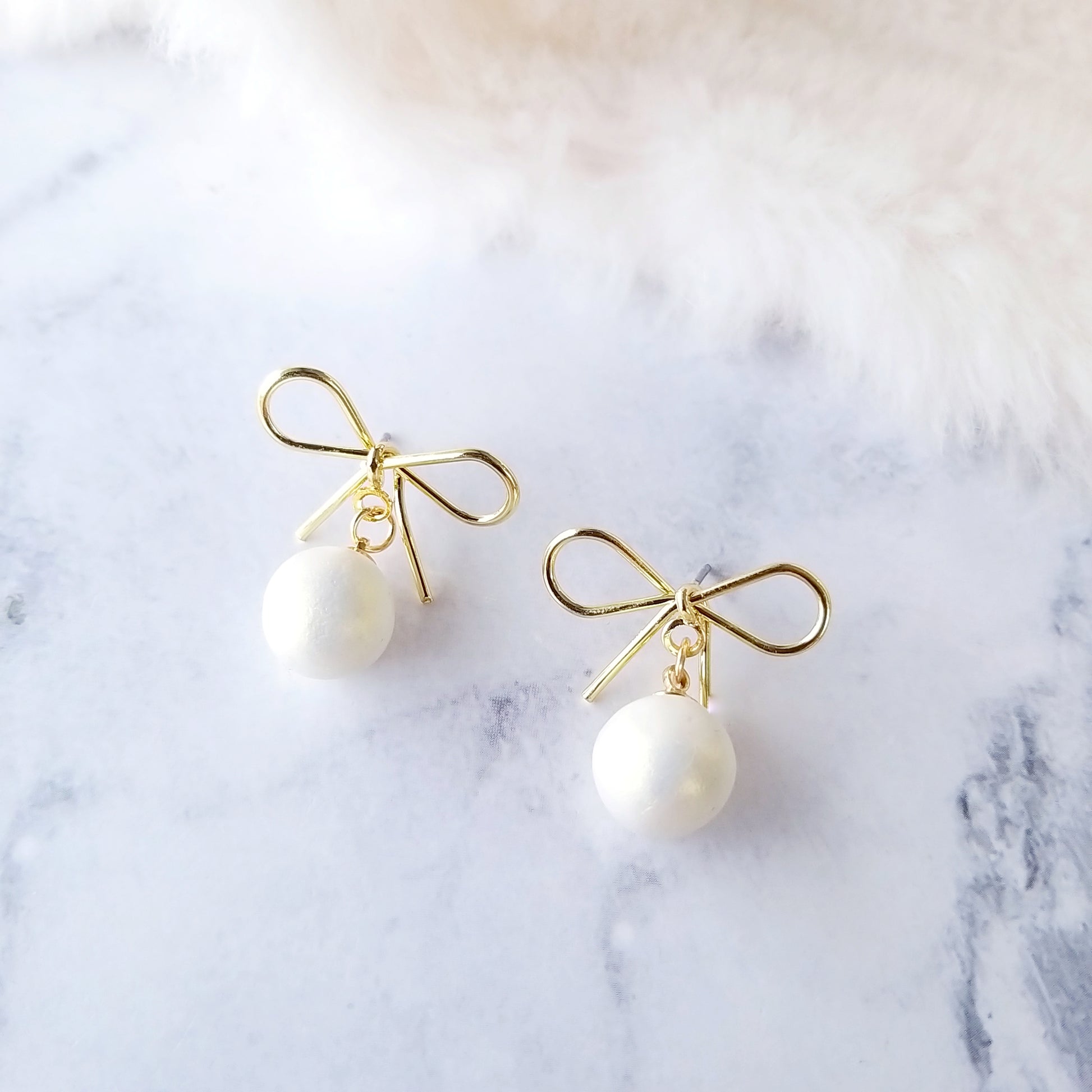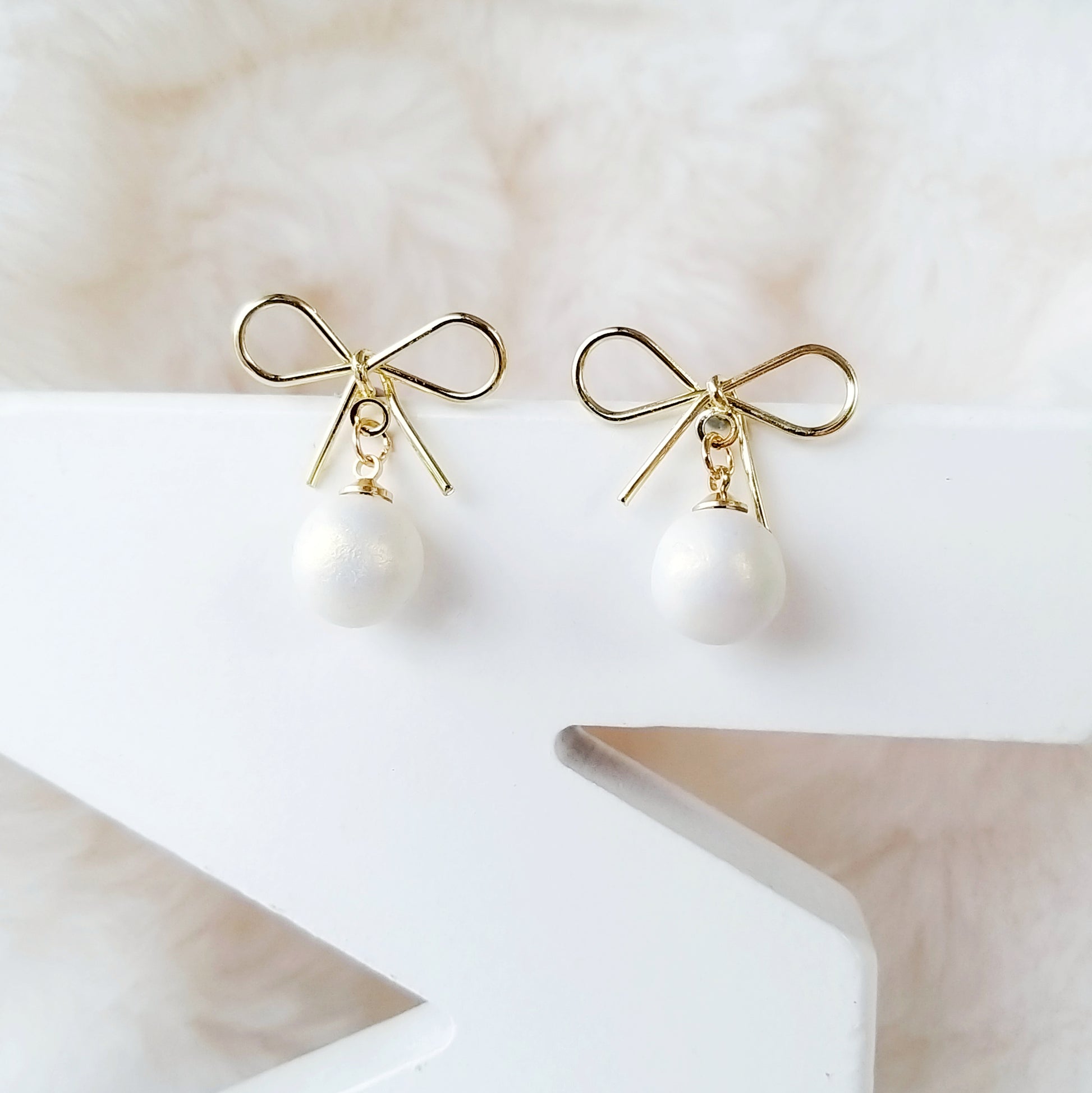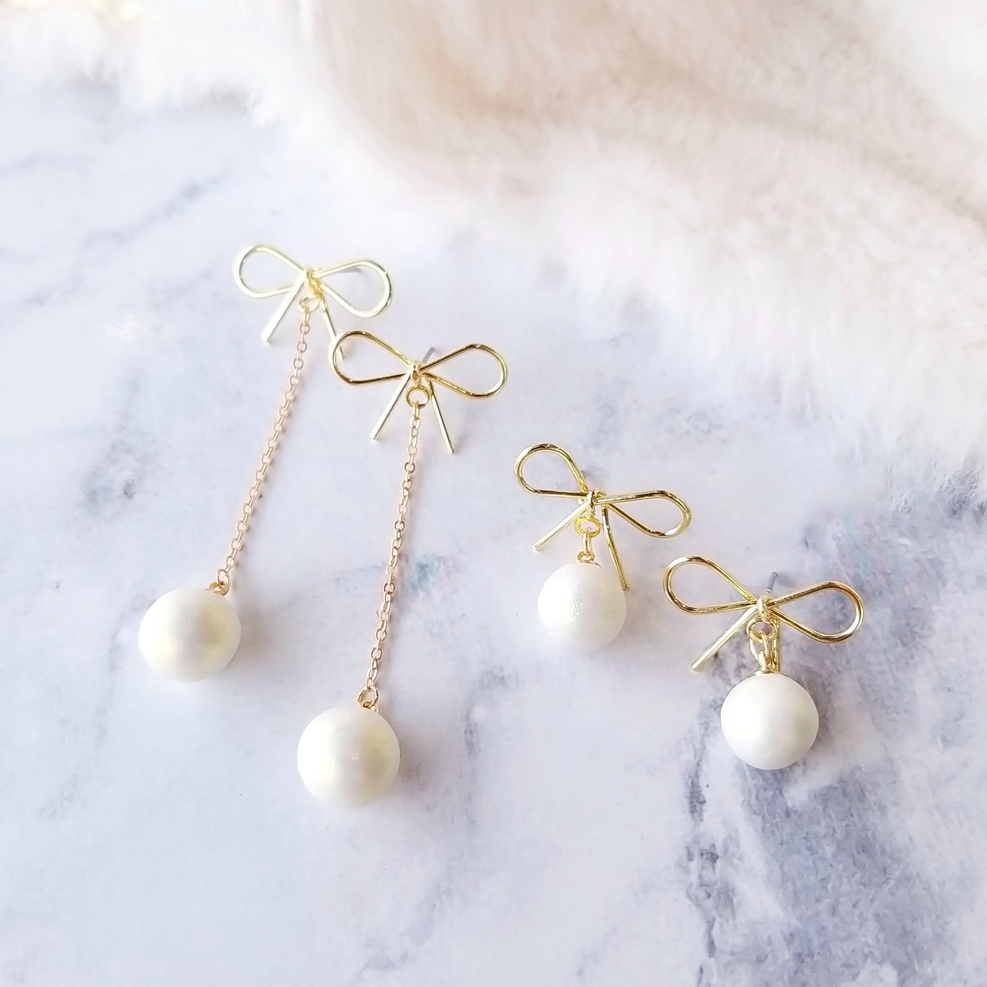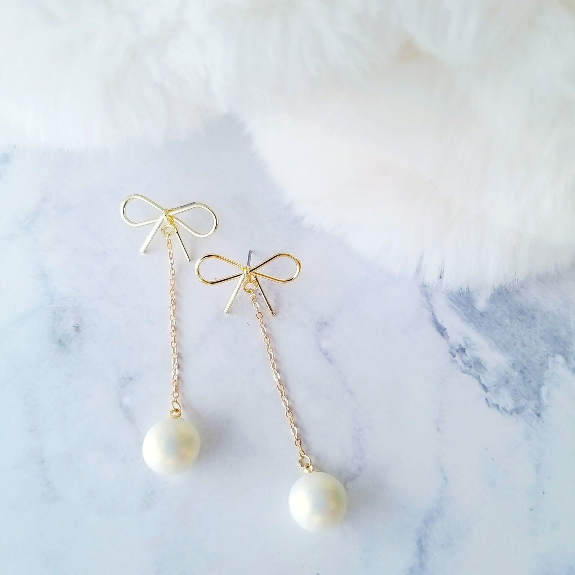 Short Drop Bow & Pearl Dangle Earrings – Elegant Dual-Length Design