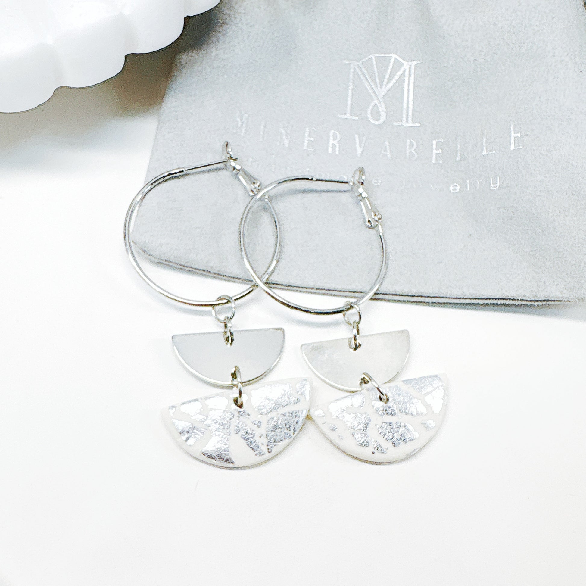 Silver Layer Semicircle Hoop Dangle Earrings