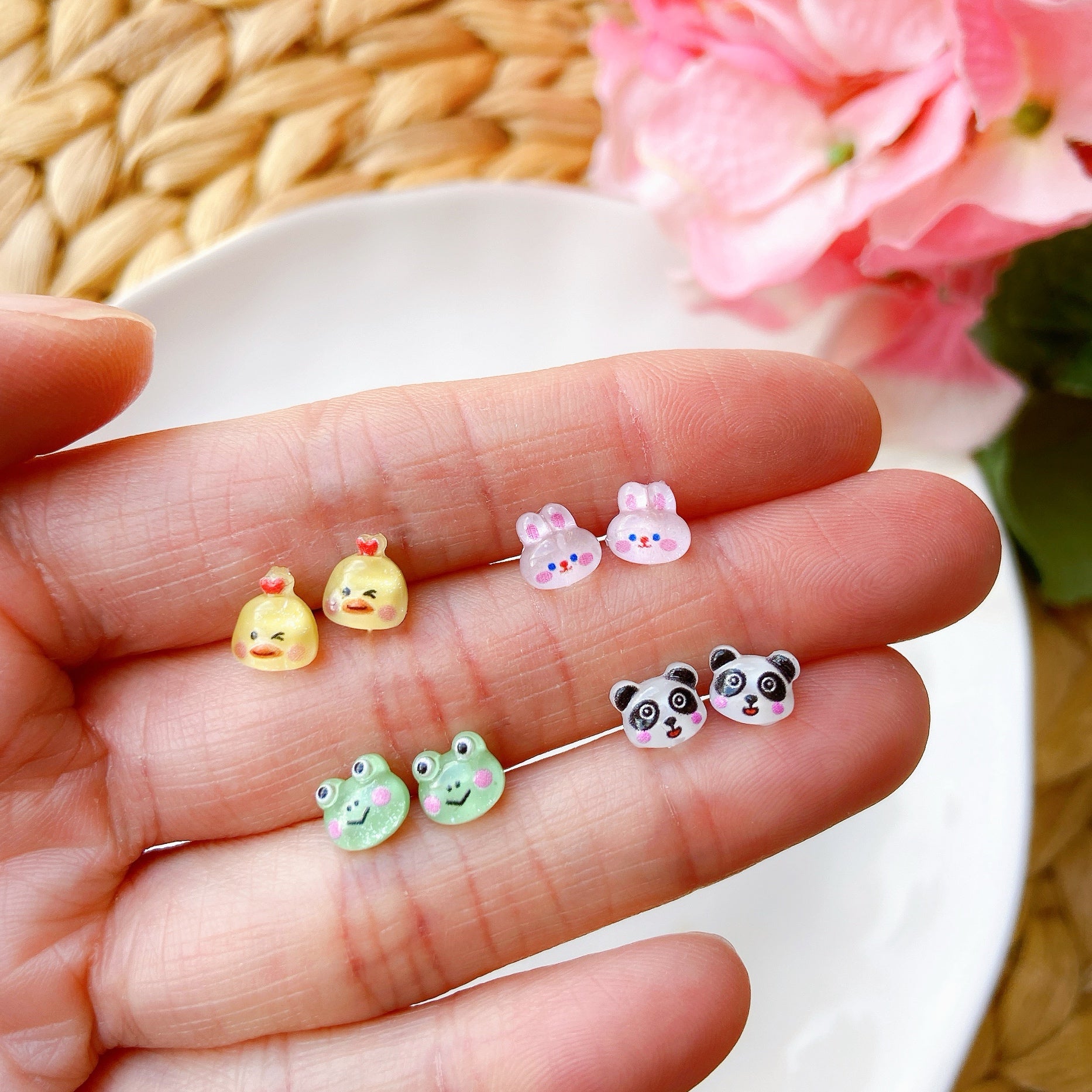 Tiny Bunny Rabbit Crystal Jelly Hypoallergenic Stud Earrings