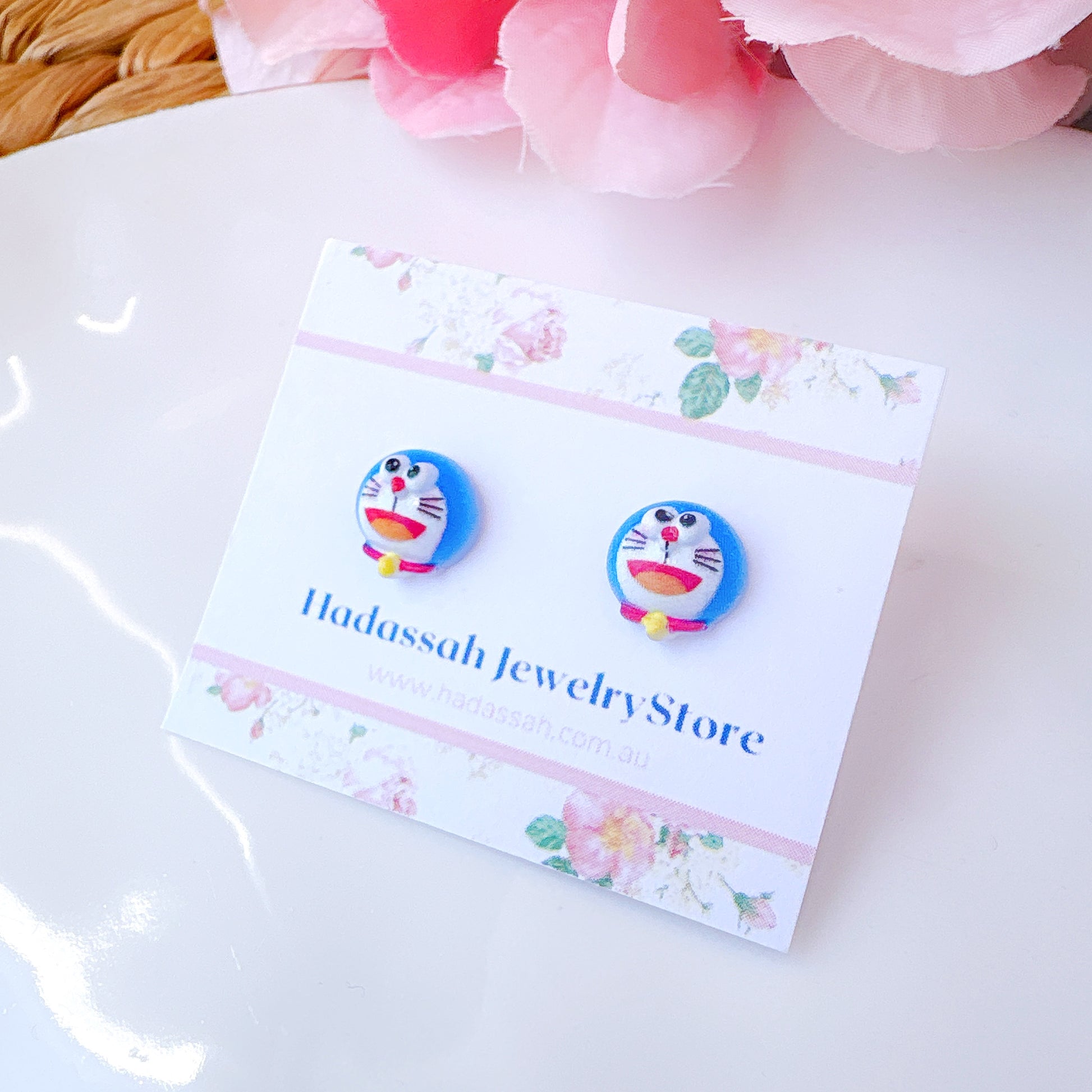 Tiny Doraemon Inspired Hypoallergenic Stud Earrings