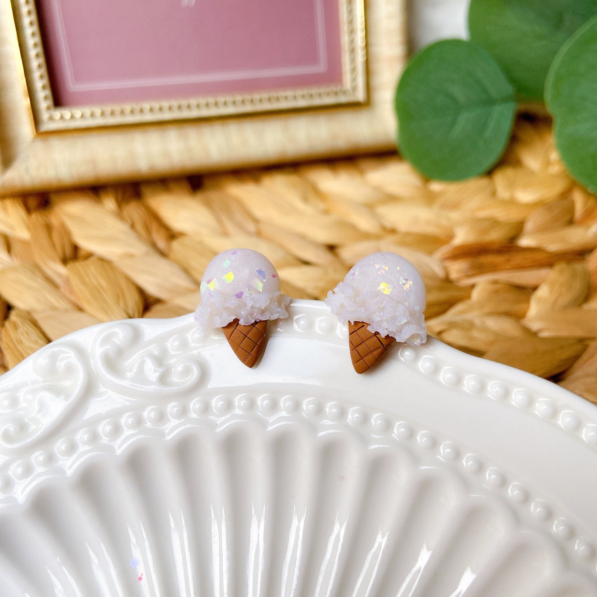 Vanilla Ice Cream Polymer Clay Hypoallergenic Stud Earrings